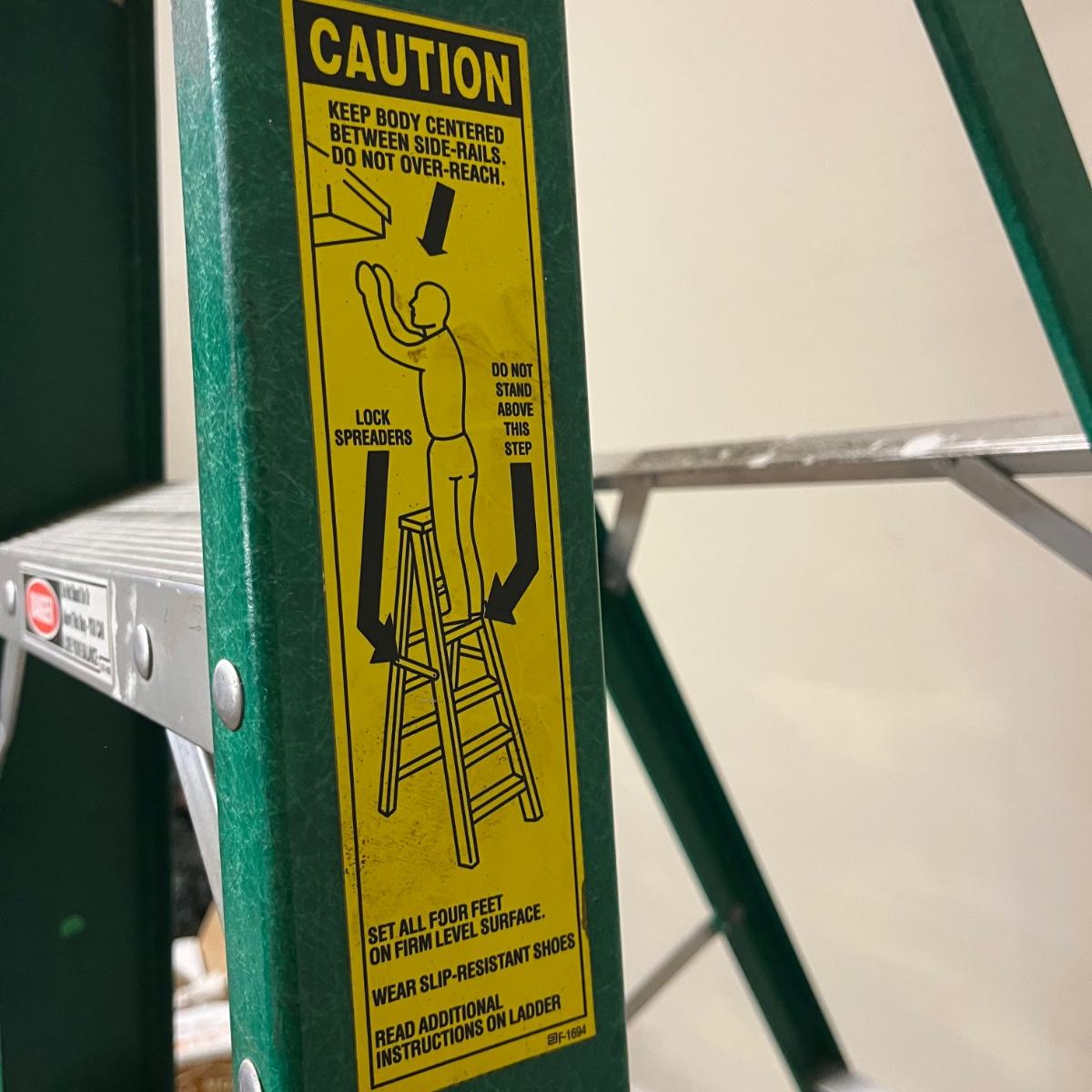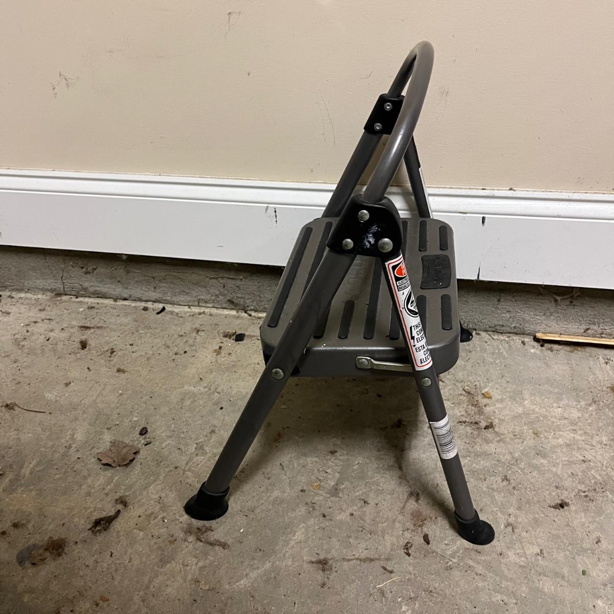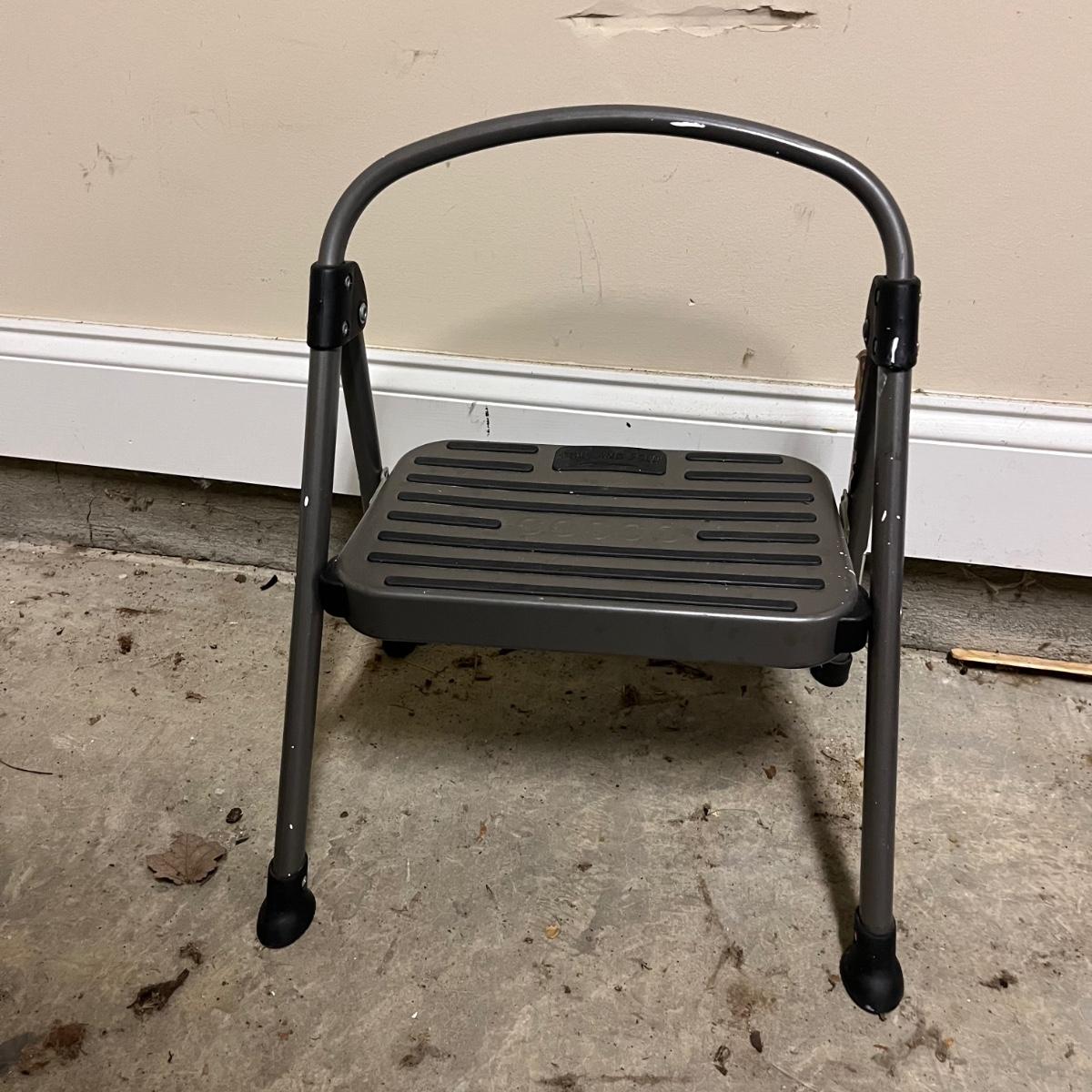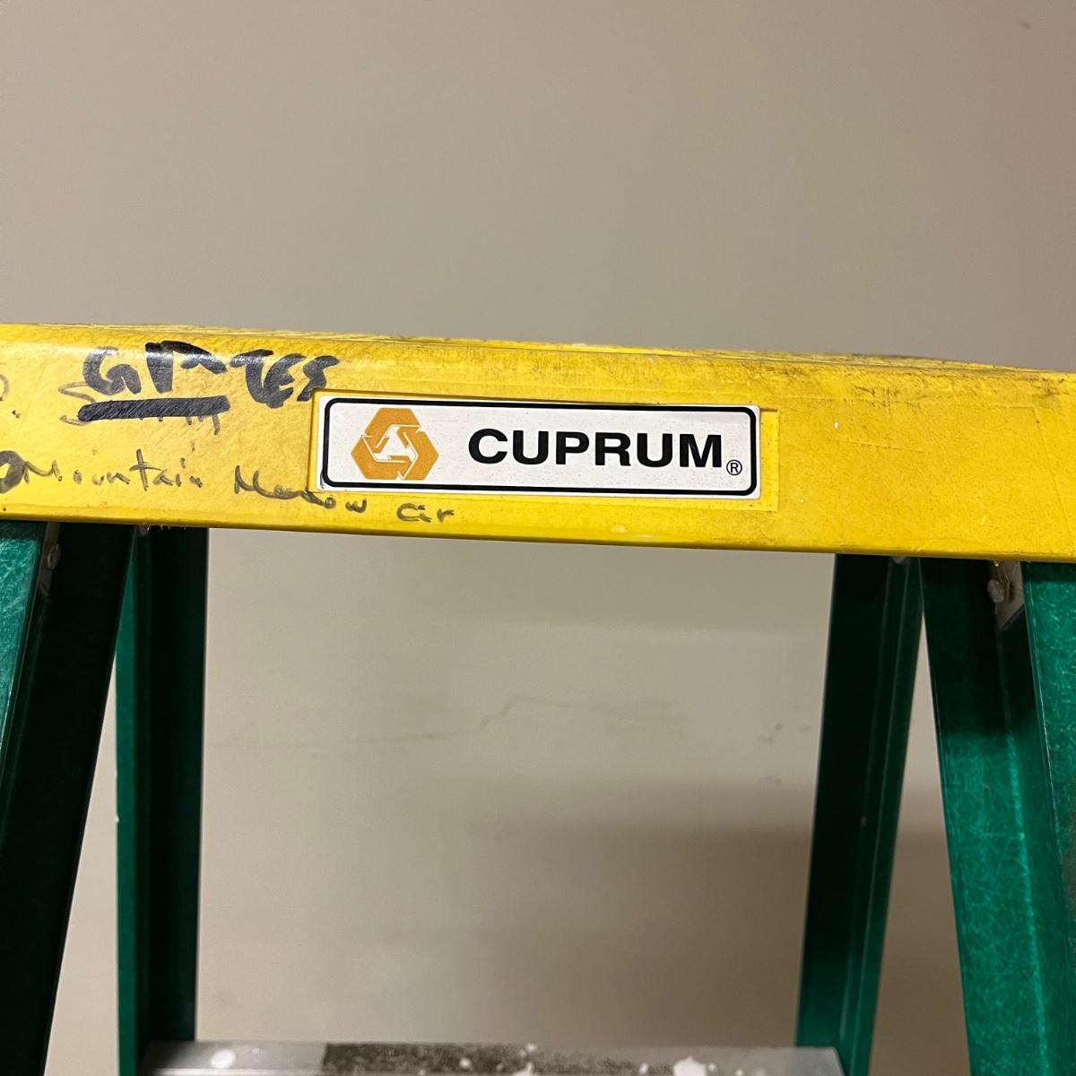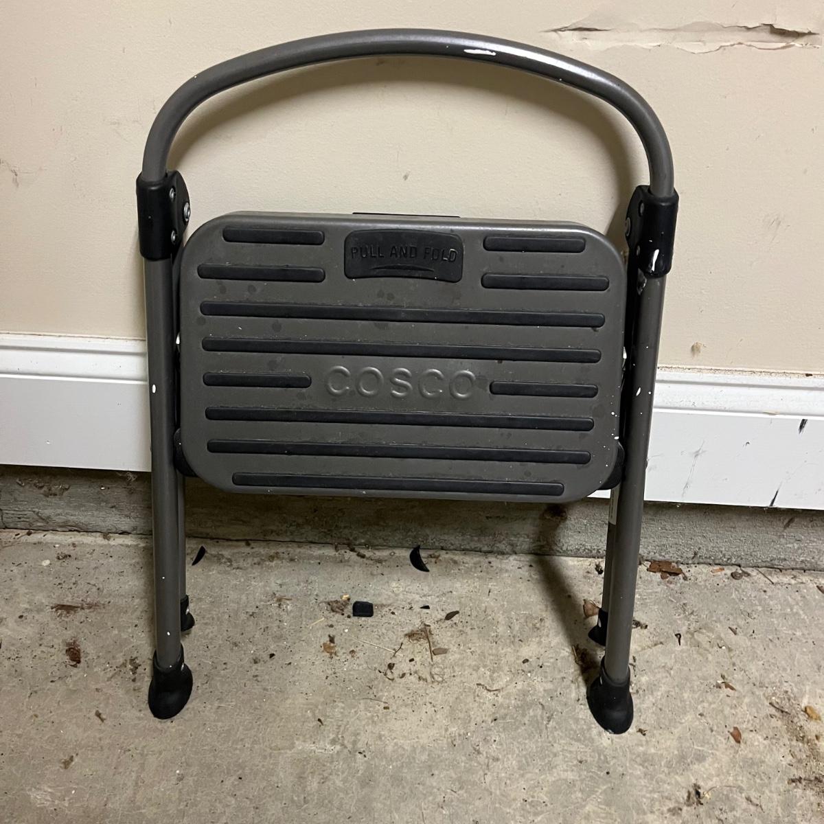 Lot includes a Cuprum six foot fiberglass stepladder and a Cosco footstool.