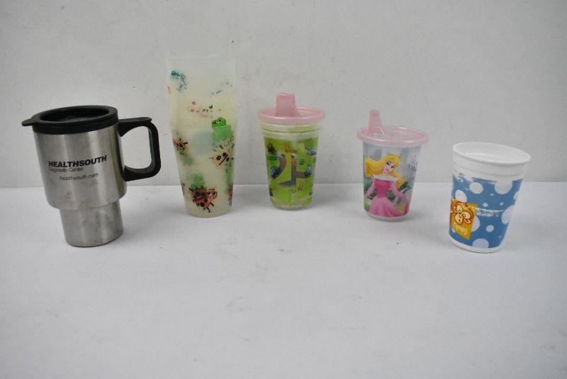 Cups Lot: 6 Vintage Kids Cups, 3 Vintage Sippy Cups, and Tumbler