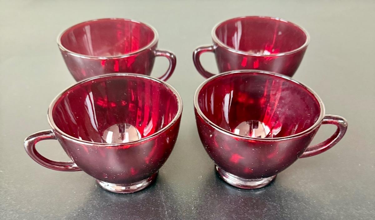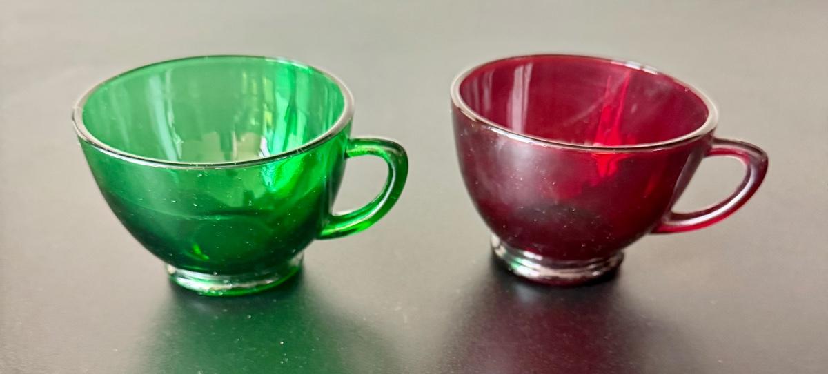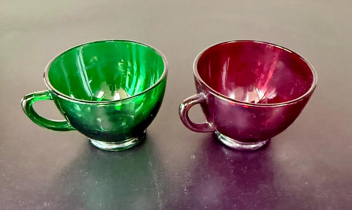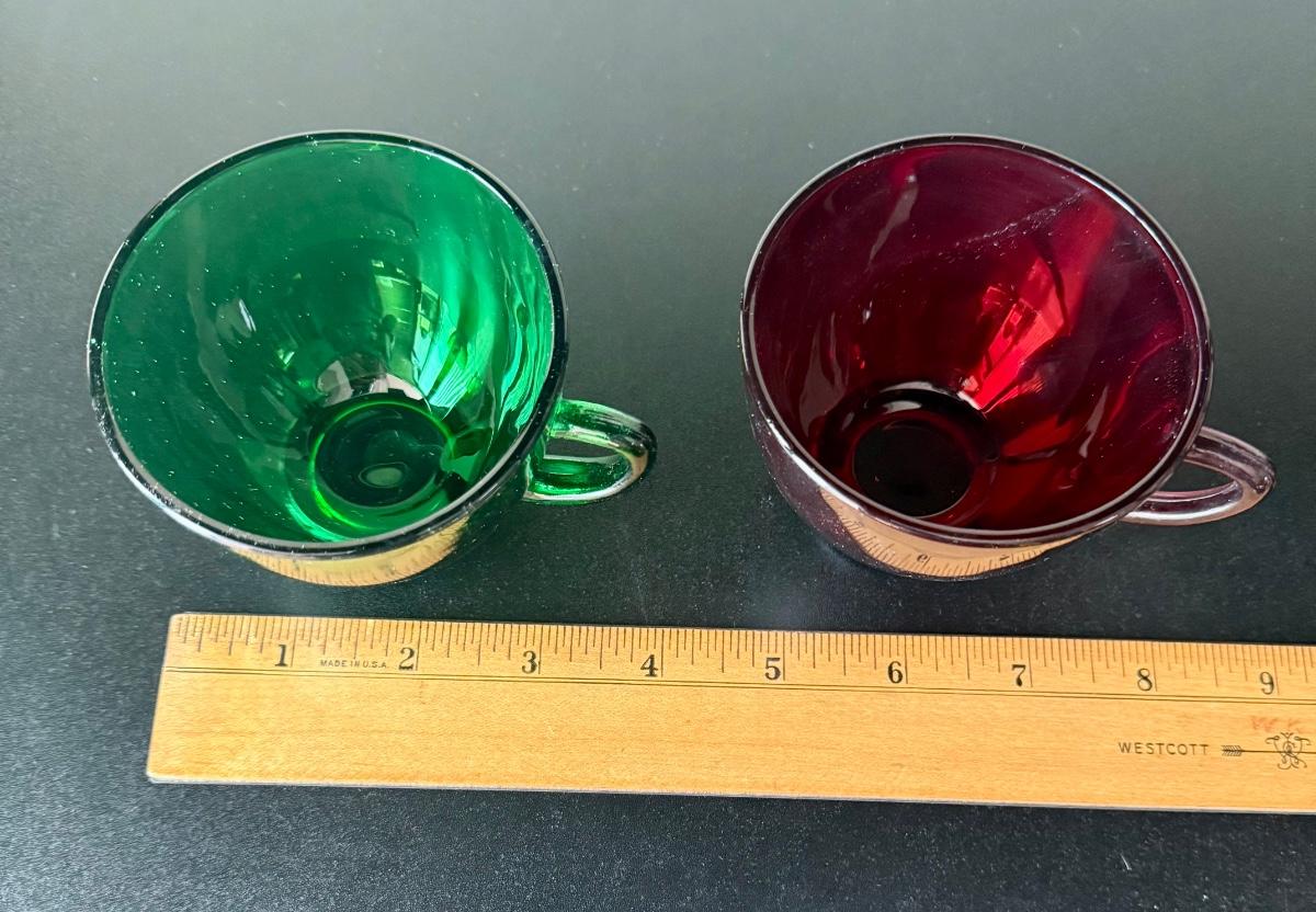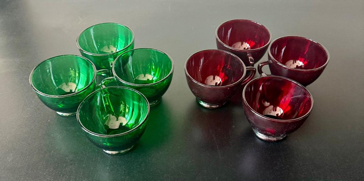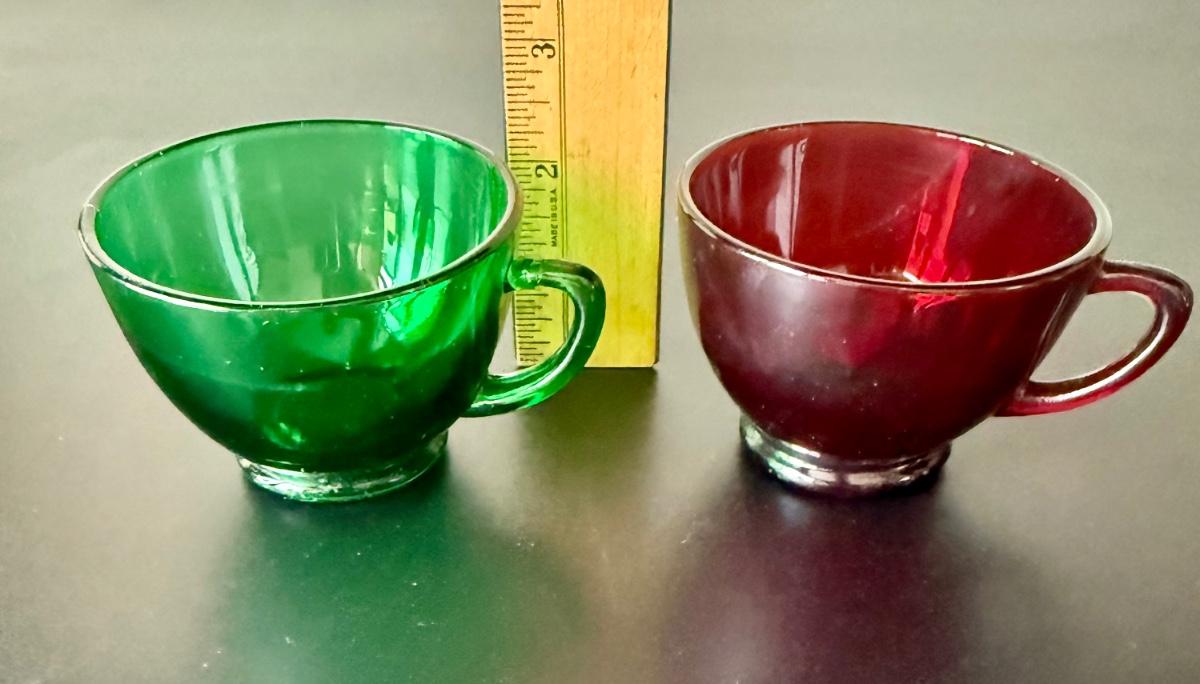 Vintage Anchor Hocking Royal Ruby Red and Forest Green Depression Glass Cups Set of 8