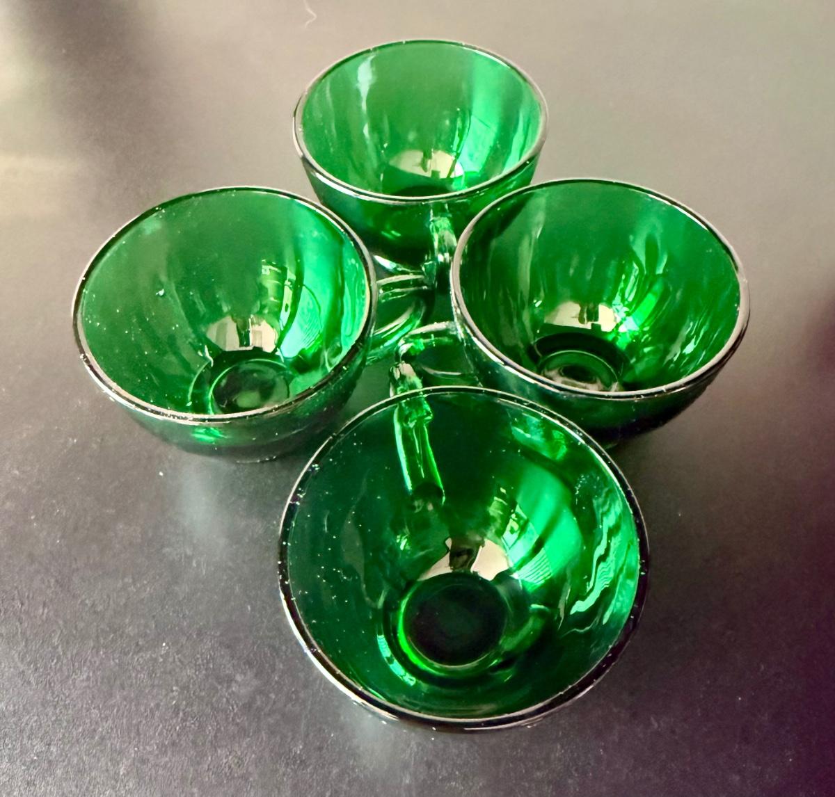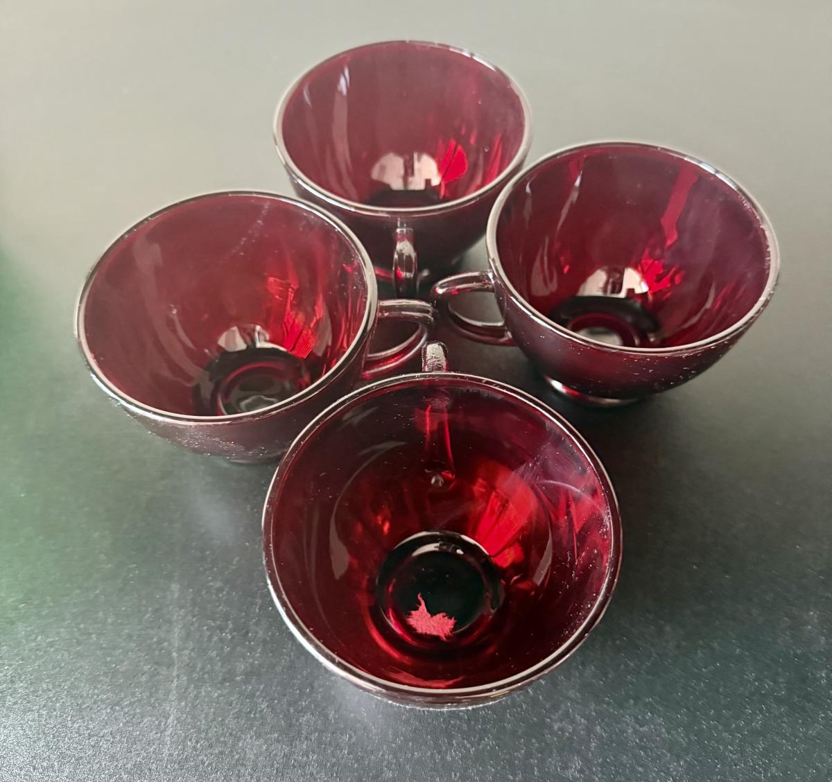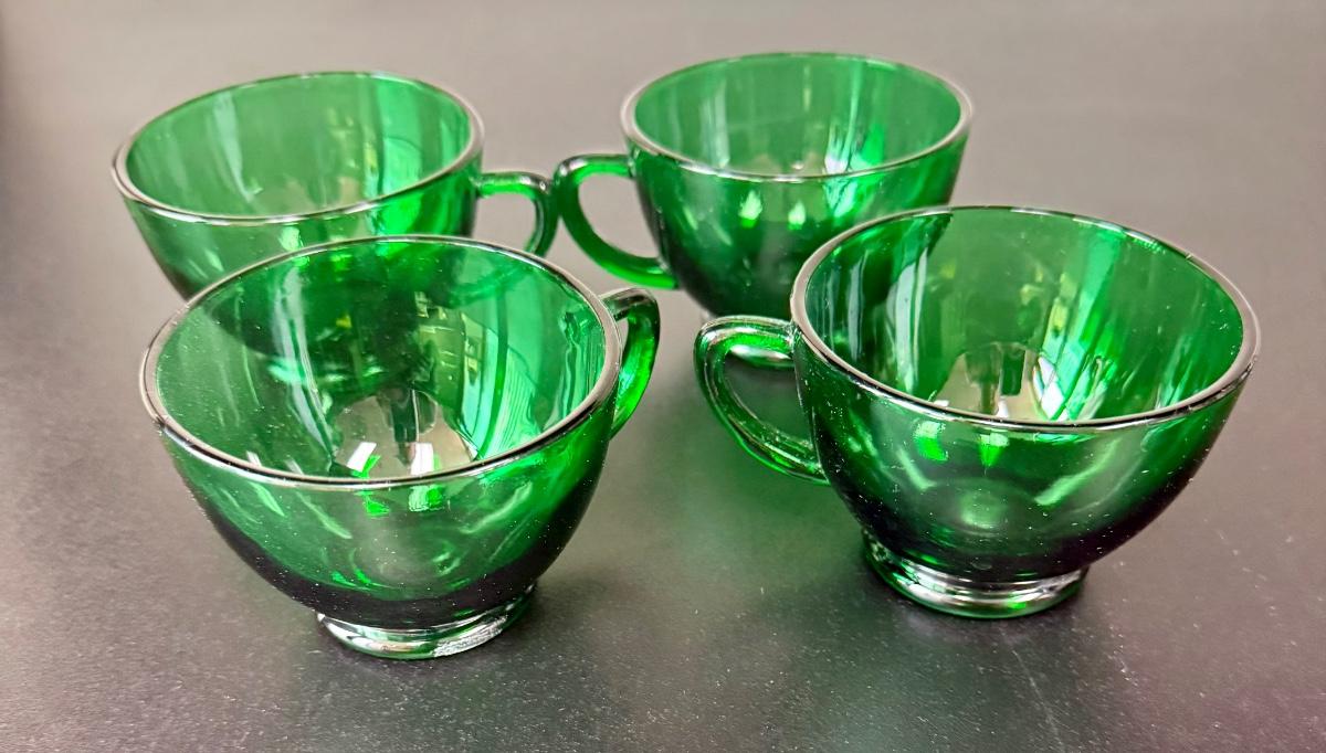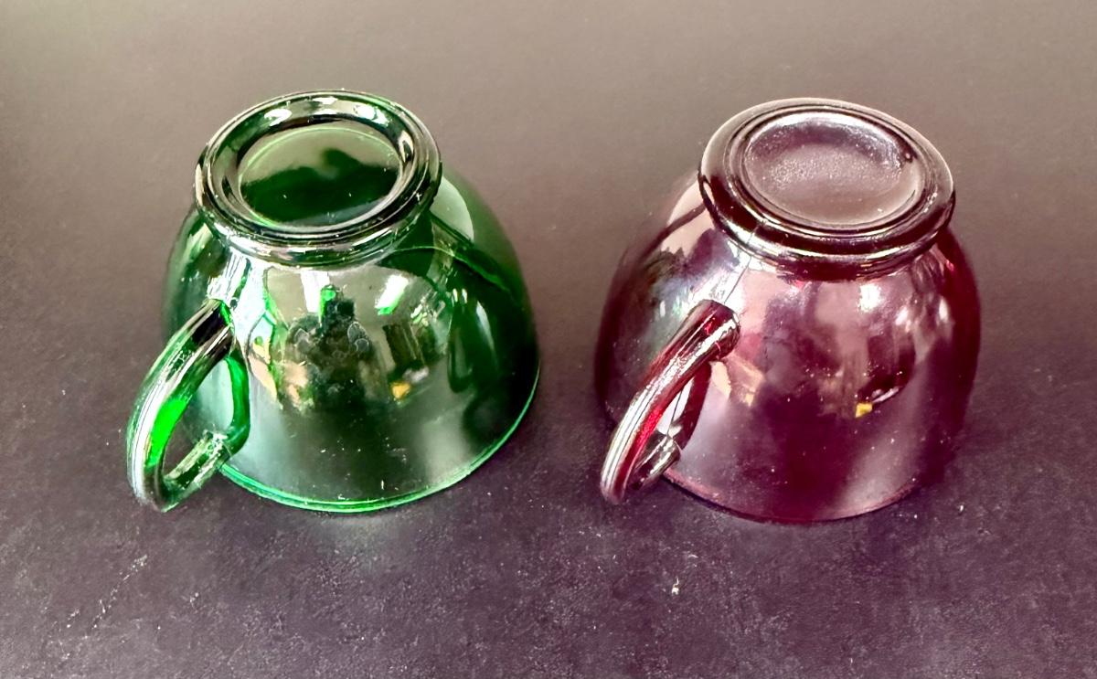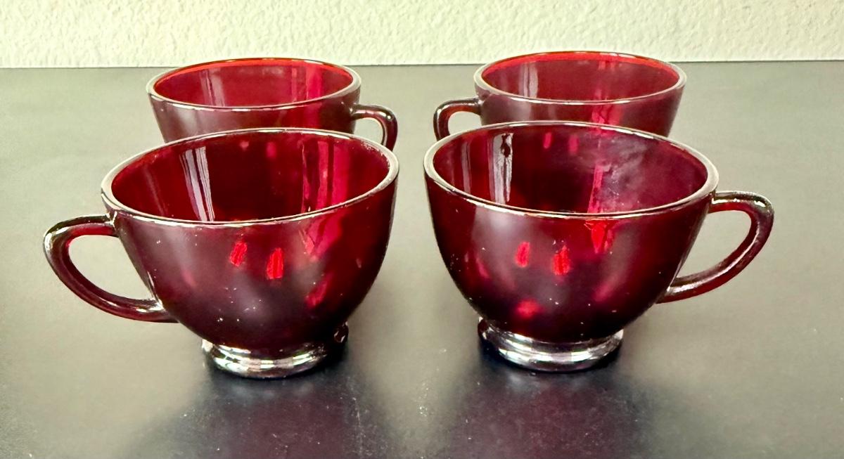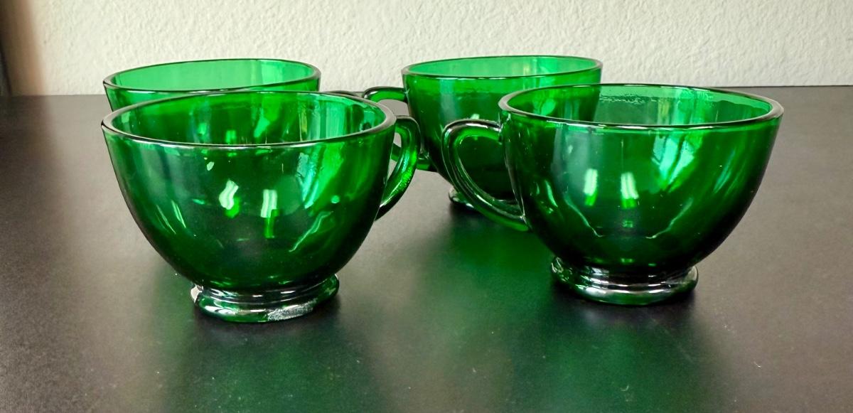 Vintage Anchor Hocking Royal Ruby Red and Forest Green Depression Glass Cups Set of 8