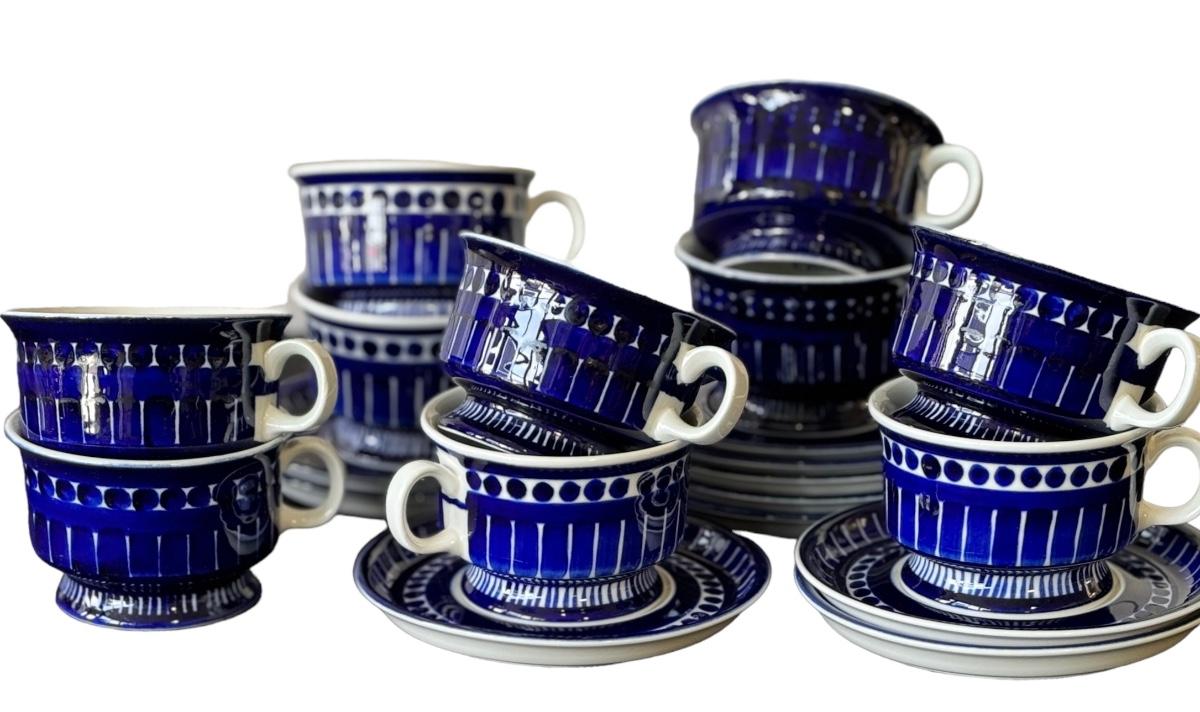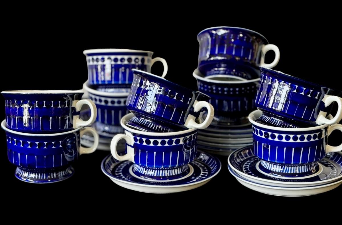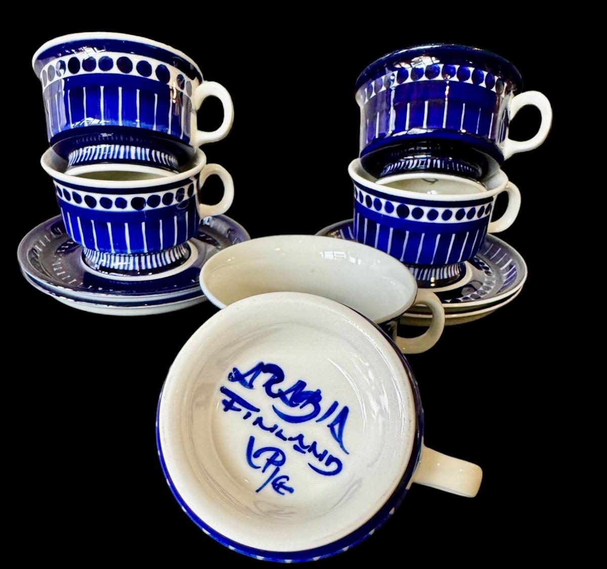 Arabia Finland Valencia. Scandinavian Mid-century Modern Set of 10 cups and saucers