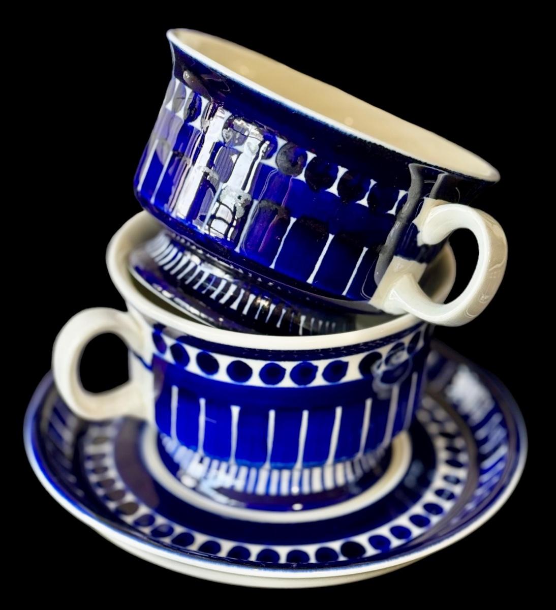 Each piece is hand painted, high quality ceramic. Features a lovely design in cobalt blue manufactured in Finland. Decoration by Ulla Procope Discontinued - Hard to find.