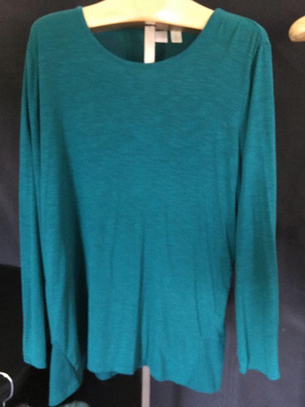 Curated 6 Pieces of Jade / Emerald & Black Blouses Pants Jackets Shirts: Simple People, Soft Surroundings, Chicos, Coldwater Creek LOT#157