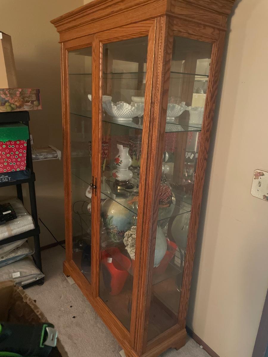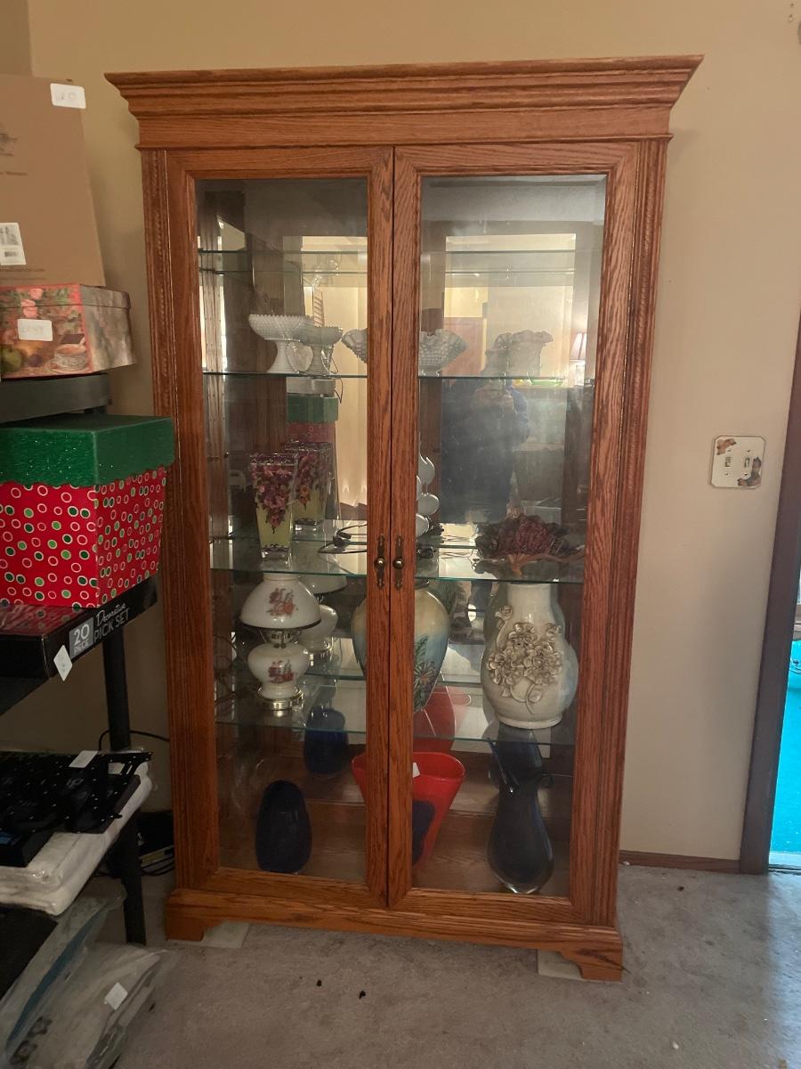 You are bidding on the cabinet only. Dimensions are 78 inches tall x 46 inches wide x 16 1/2 inches deep