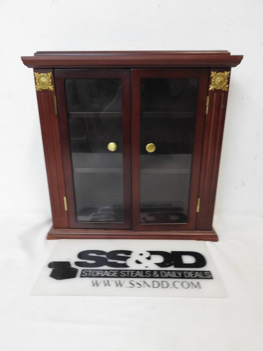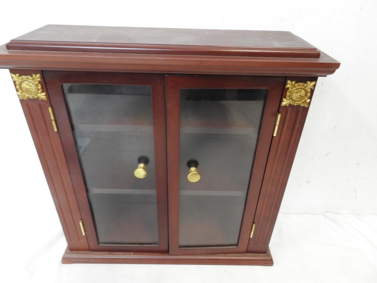 Curio, Mahogany Colored Wood w/Glass Doors, 14 1/4" x 13",