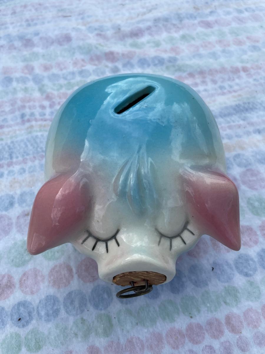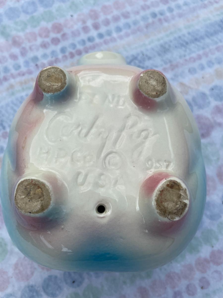 Vintage 1950’s Hull pottery Corky Piggy bank in Pink & Blue