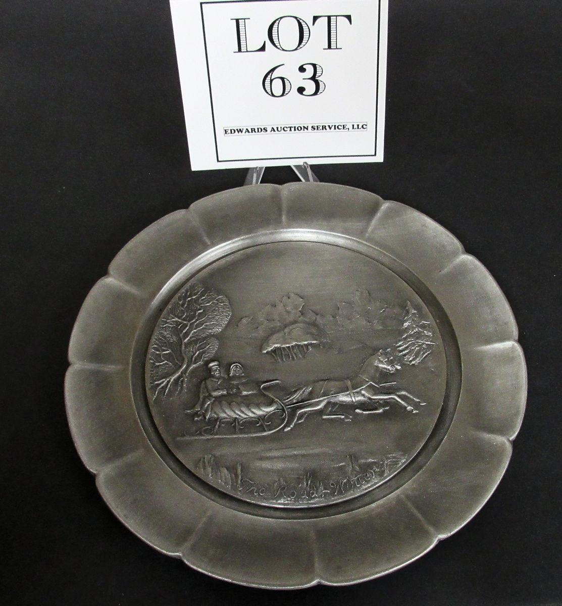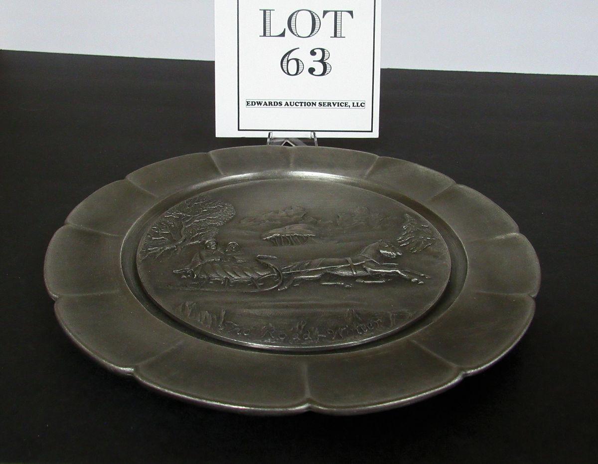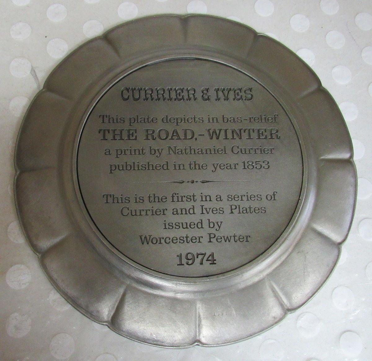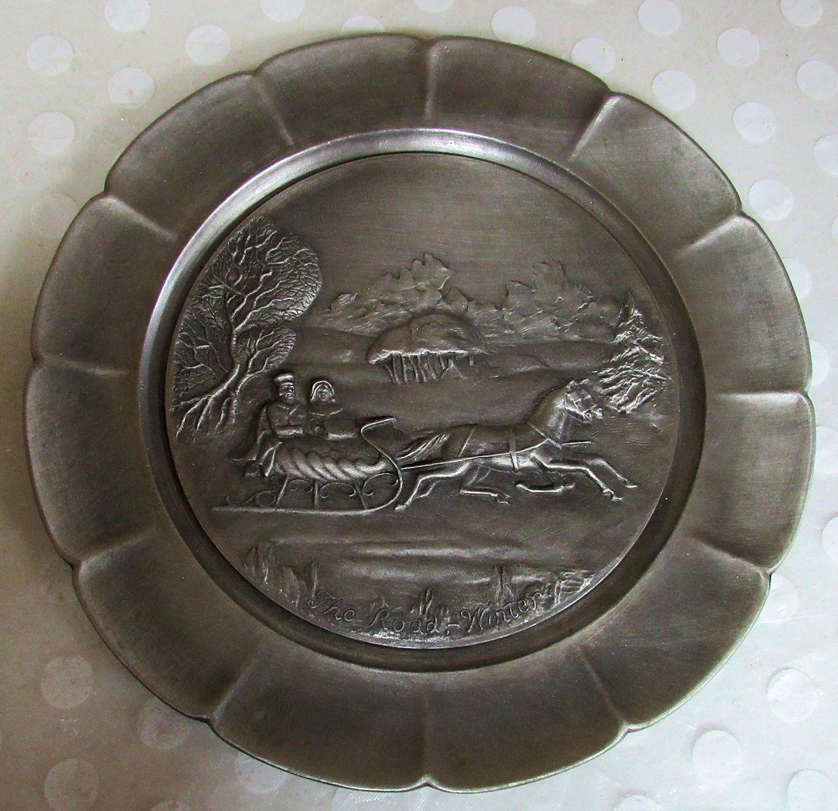 Currier and Ives Pewter Bas-Relief Plate The Road-Winter, 1st In Series