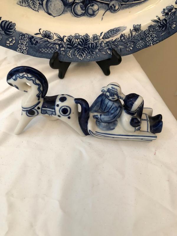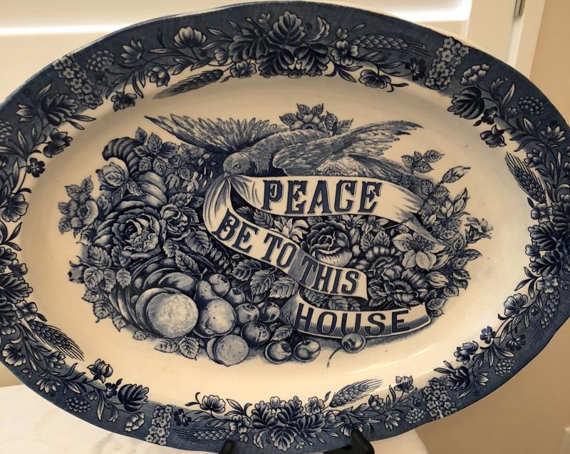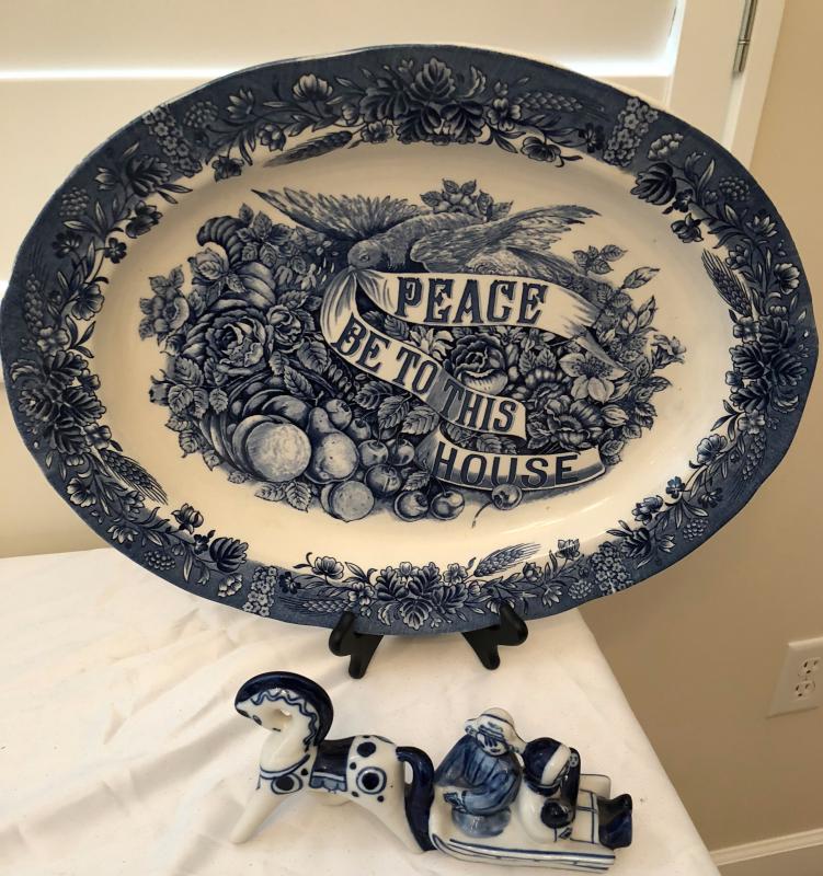 "Peace be to This House" in excellent condition, measure 14" across. Also includes the ceramic figurine made in the USSR.