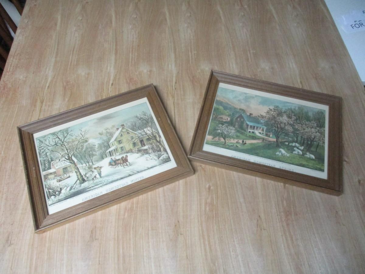 Currier & Ives Framed Art Approx 12 1/2" x 9 3/4" - A