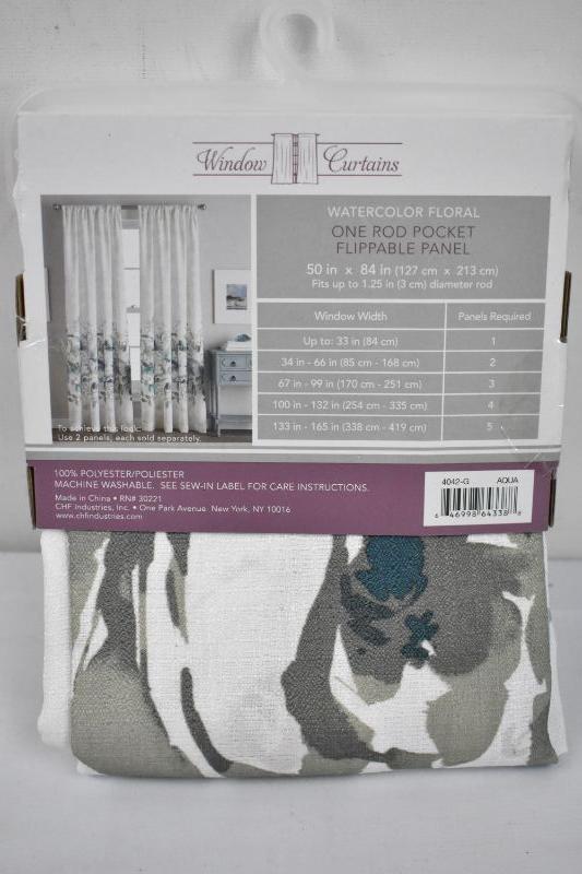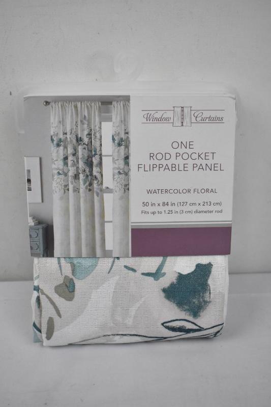 Curtain Panel by Window Curtains: 1 Rod Pocket Flippable Panel Watercolor Floral 50" x 84" - New
