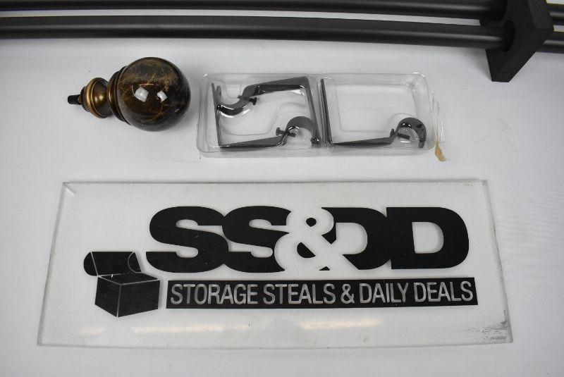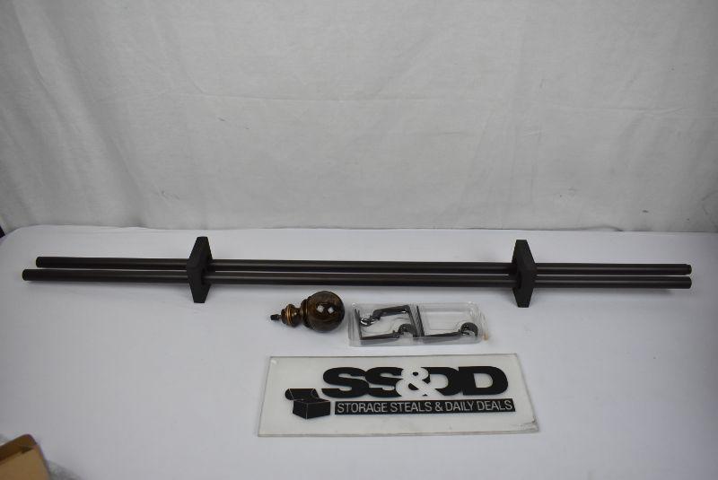 Curtain Rod, Dark Brown. Missing 1 End Cap & Some Hardware