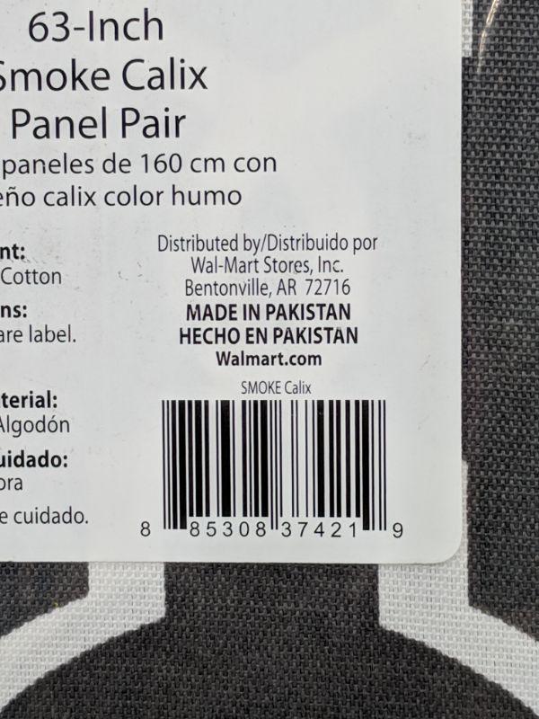 Curtains: 63-Inch Smoke Panel Pair (2), Smoke Calix, Mainstays - New