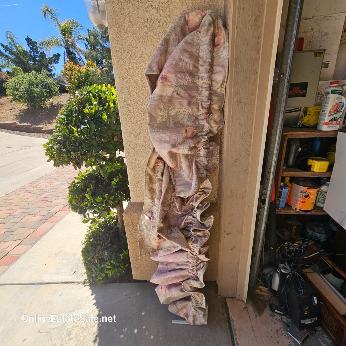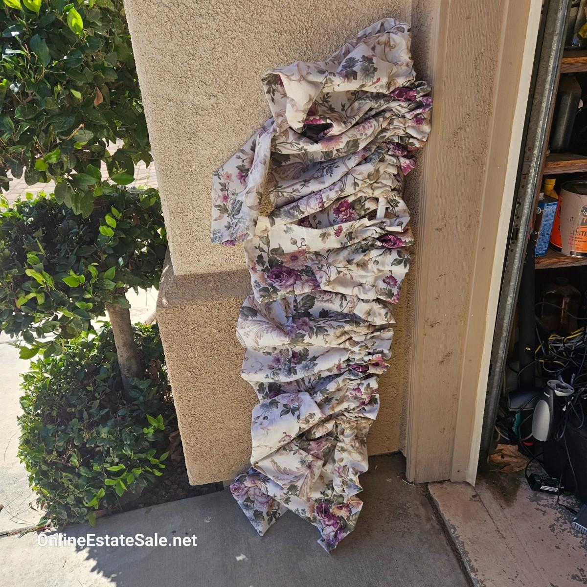 COMPLETE LOT OF CURTAINS AND RODS, SEVERAL SETS.