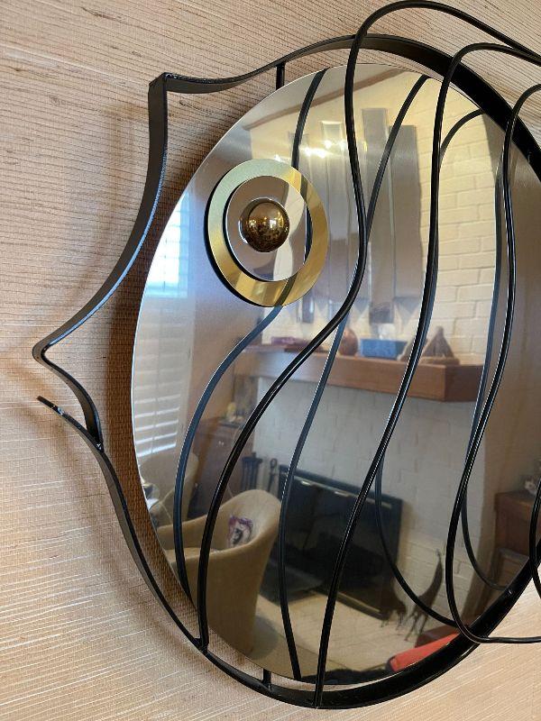 Curtis Jere Modern Fat Fish Wall Sculpture Mirror