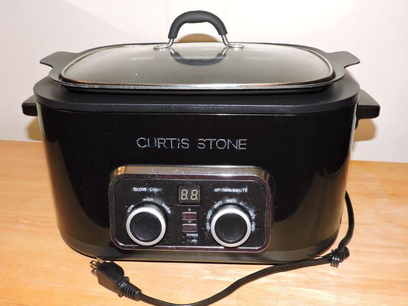 Curtis Stone 6qt Ultimate Slow Cooker Versacooker, very good condition. **Please read Terms and Conditions before placing a bid. Pick up is Thursday, August, 15 2019 from 4pm to 7pm or Sunday, August 18 from 11am-2pm in Mullica Hill. All sales are final. All sales are as is, where is. Please review all photos. Any props included in photos are not included in listing. All measurements are approximate.