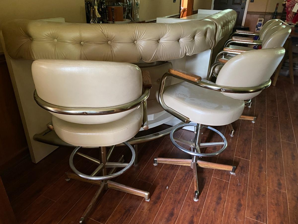 Curved 2 Pc Bar Unit, 4 Bar Stools 33x29x20 Bar Section 1: 59x20x41 Bar Section 2: 60x20x41