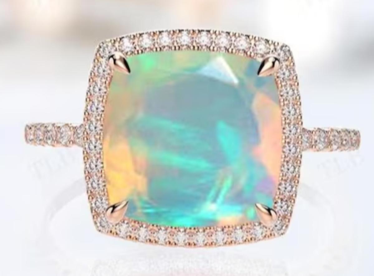Cushion Cut Natural Opal Halo Ring