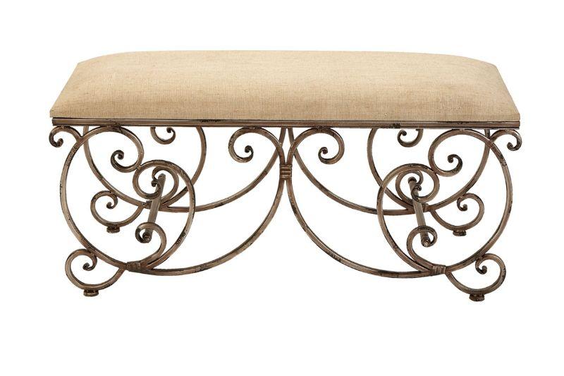 Cushioned Bench,18 X 40 Inch Traditional Metal Scrollwork Cushioned Bench, Beige, Open Box - New