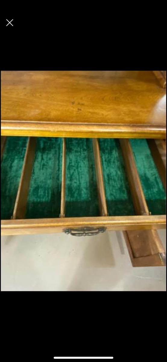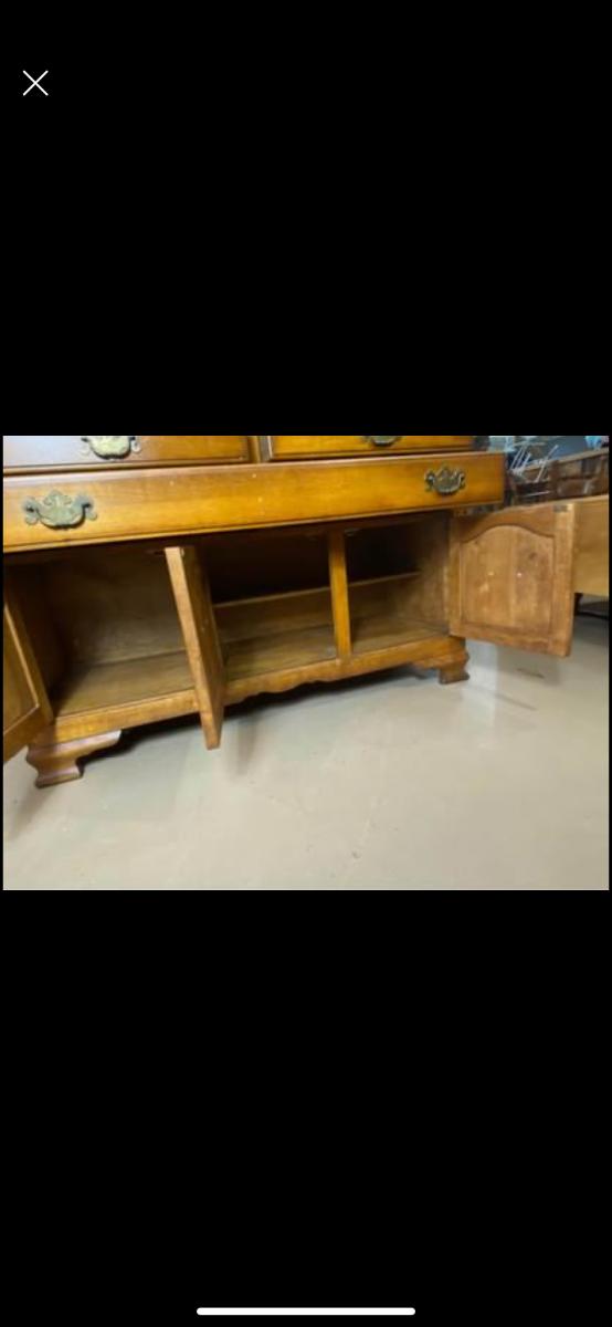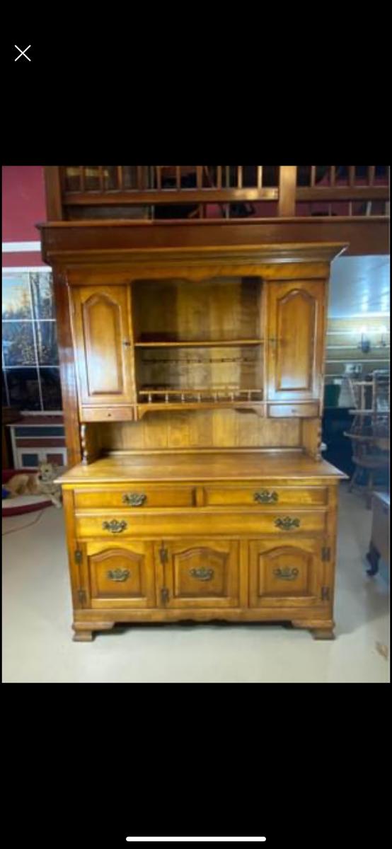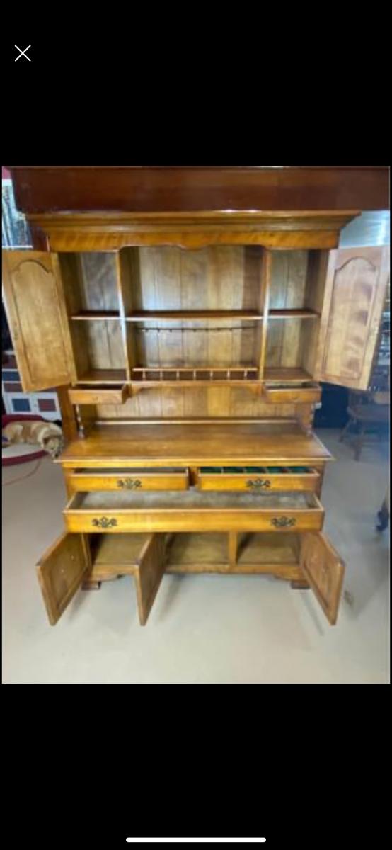 This is a well made solid piece. Two piece cabinet with tons of storage. Would be beautiful painted to match your decor.