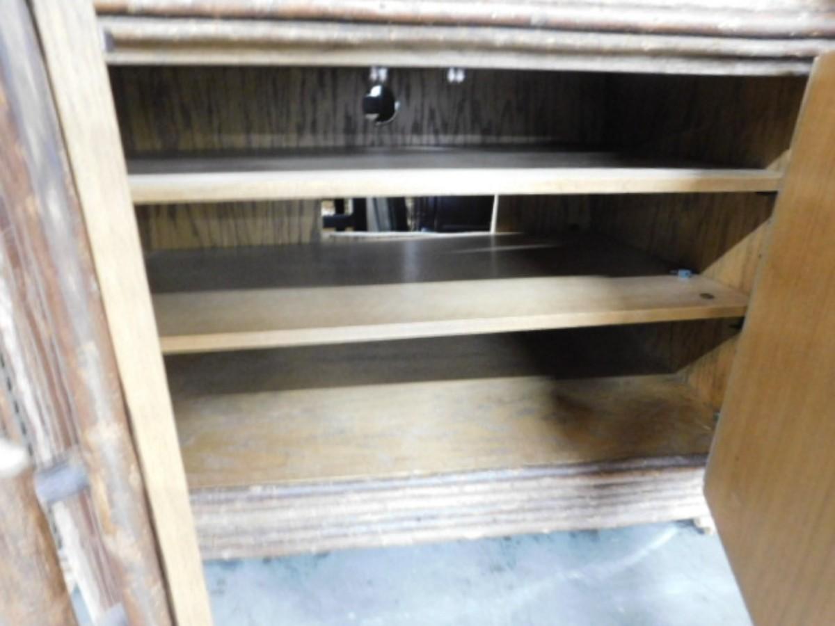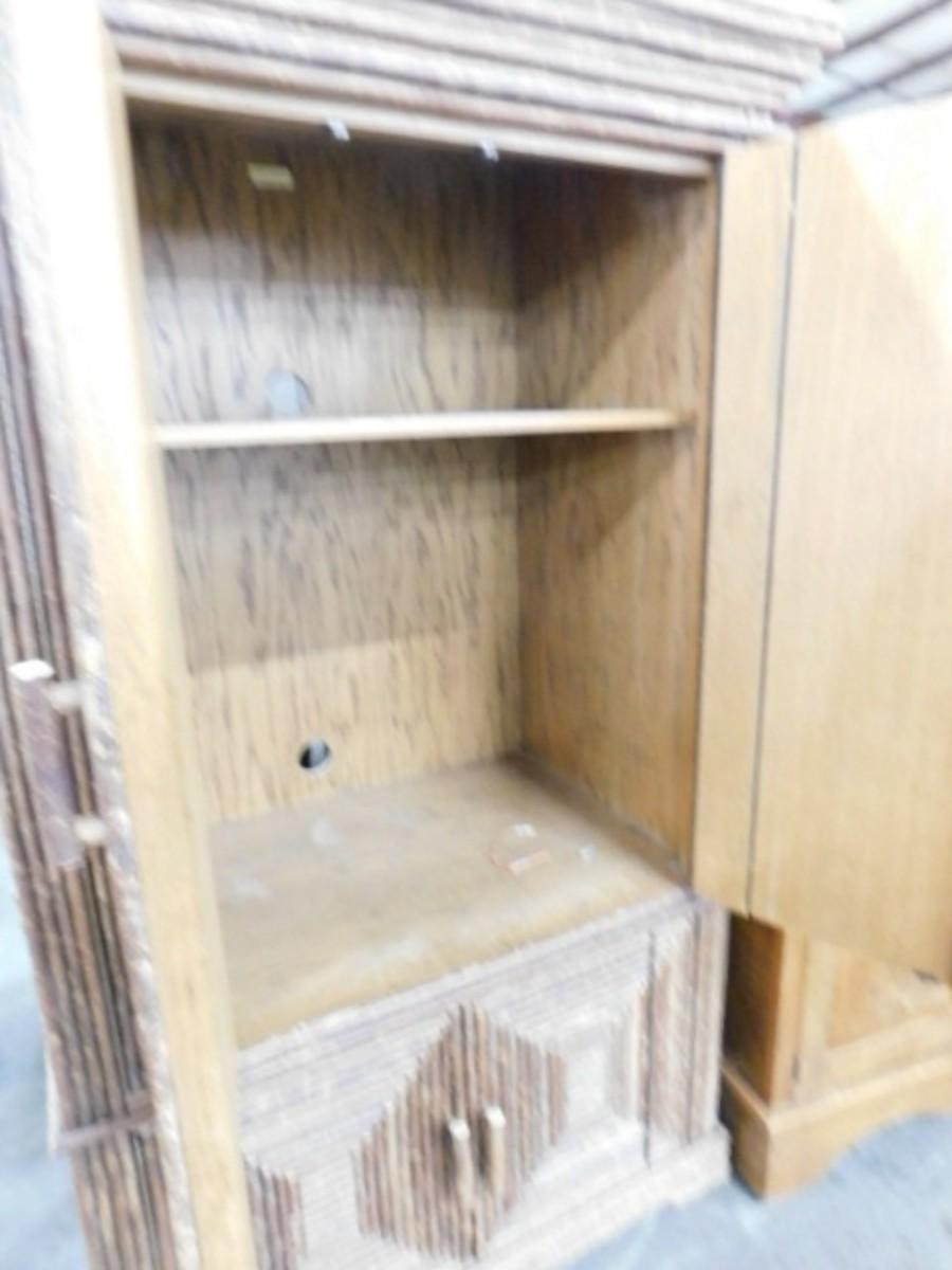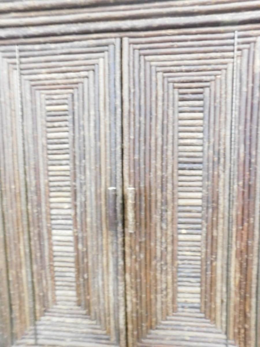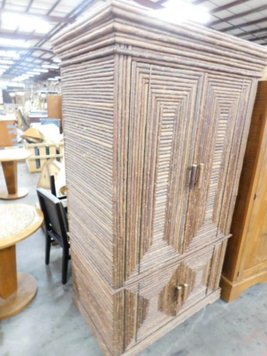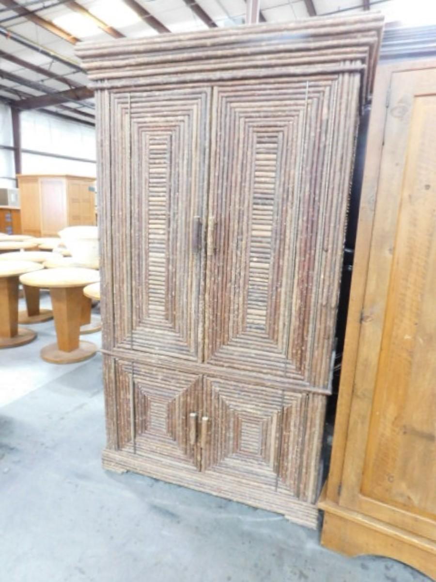 Custom Armoire Rustic Design Half-Branch on Solid Wood by La Lune Collection Choice A. Expect some wear or scratches to the finish. Shipping option available via freight or local mover at Buyer's expense. Buyer must have all shipping scheduled within the stated dates and times of pickup. Recommended local mover is Beaty Bros. Moving 828-201-2982