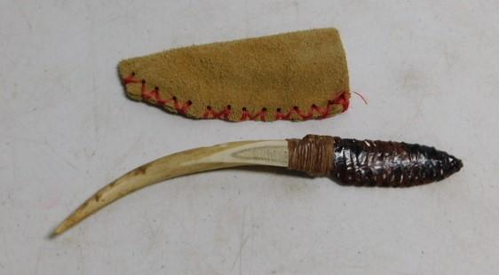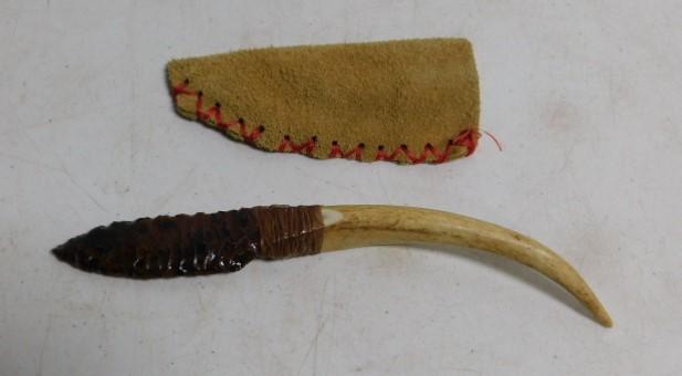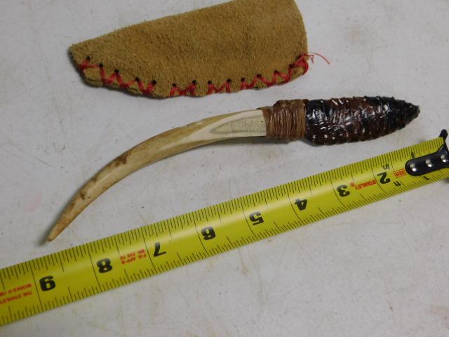 Custom Arrowhead and Antler Knife with Sheath 9"