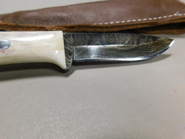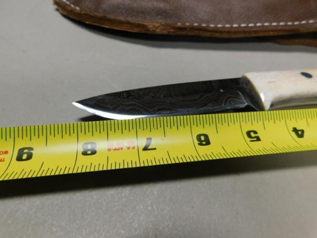 Custom Crafted Damascus Fixed Blade Knife with Polished Bone Handle 8"