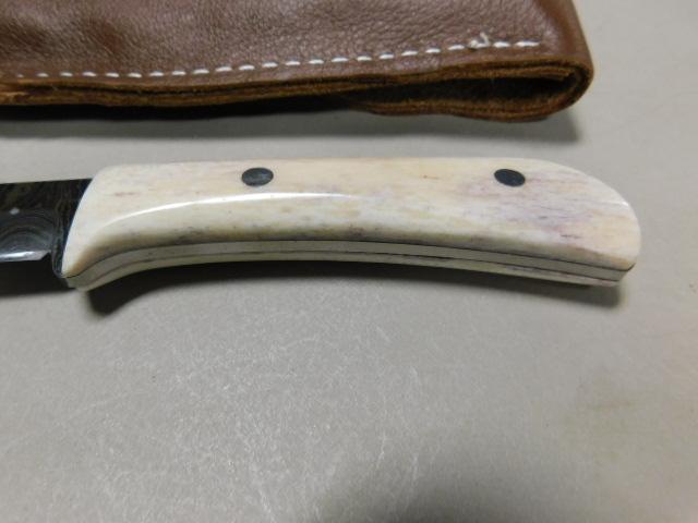 Custom Crafted Damascus Fixed Blade Knife with Polished  Bone Handle 8"