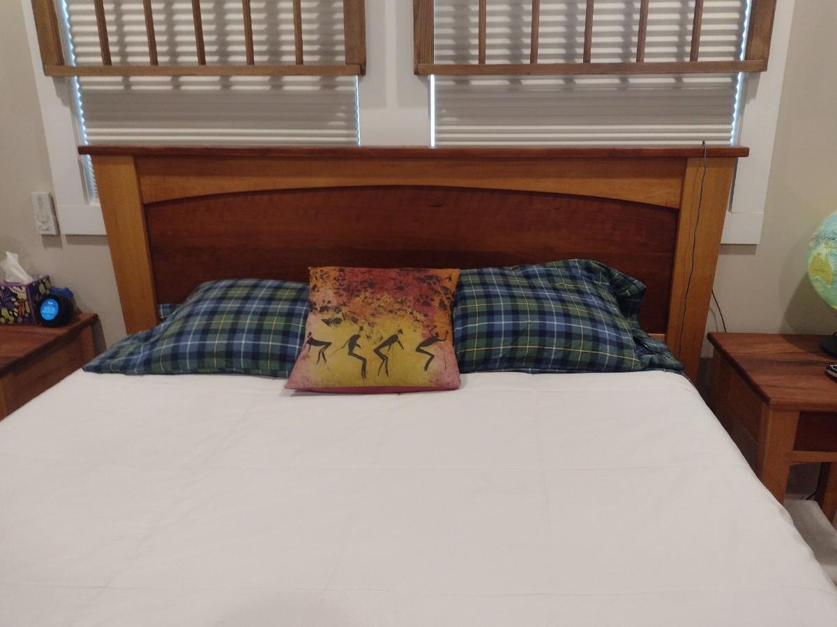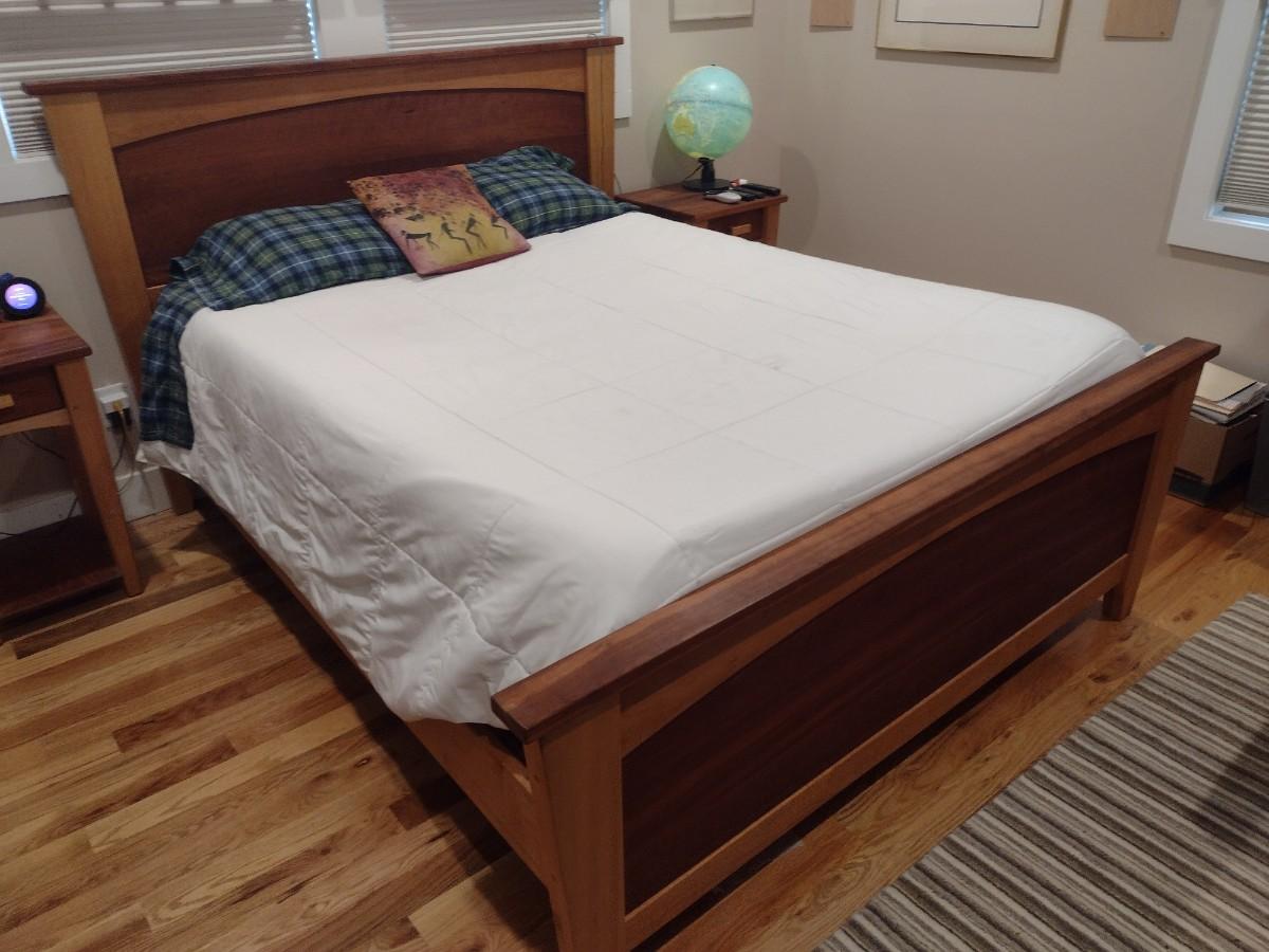 Custom Crafted Solid Mixed Wood Queen Sized Bed with Mattress Set Craftsman. Bring tools to break down bed.