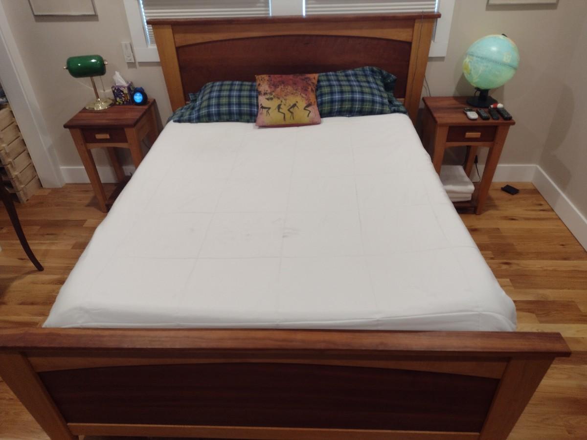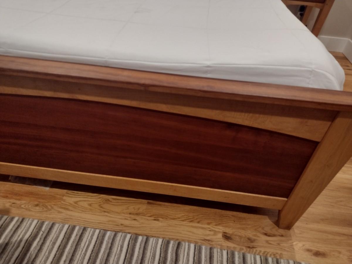 Custom Crafted Solid Mixed Wood Queen Sized Bed with Mattress Set by Local Craftsman