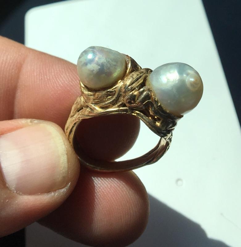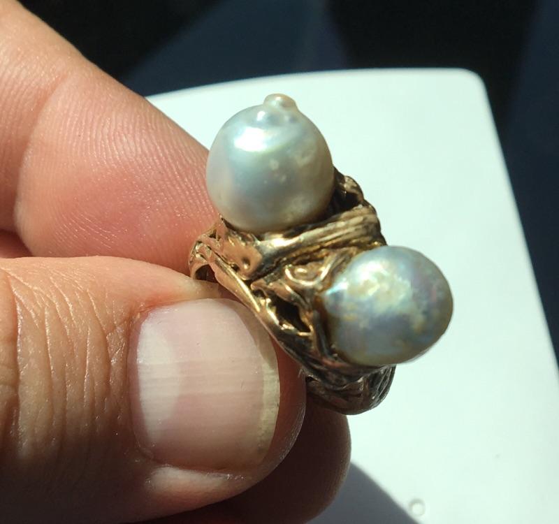 Custom Design 14k Gold Ring 9 grams with Large Pearls
