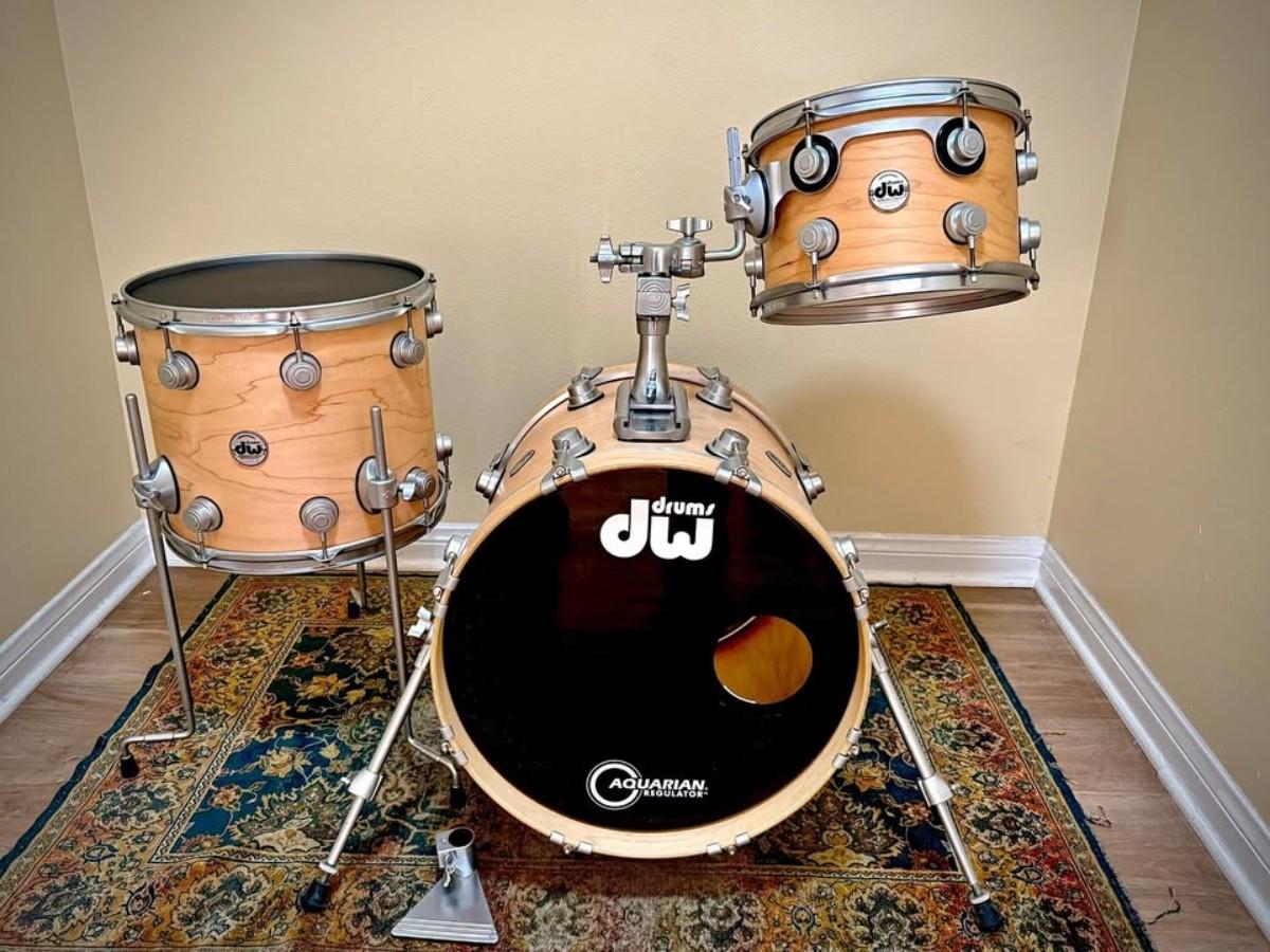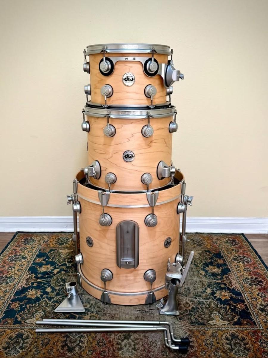 Amazing deal on a top-of-the-line, made in U.S.A., DW Collector's Series PURE MAPLE drum set in perfect condition with the high-end BEATO cases. This is DW's flagship drum kit that made them famous, not the PDP or Performance Series stuff. It was a custom order for an artist and was upgraded with Satin Chrome Hardware throughout.