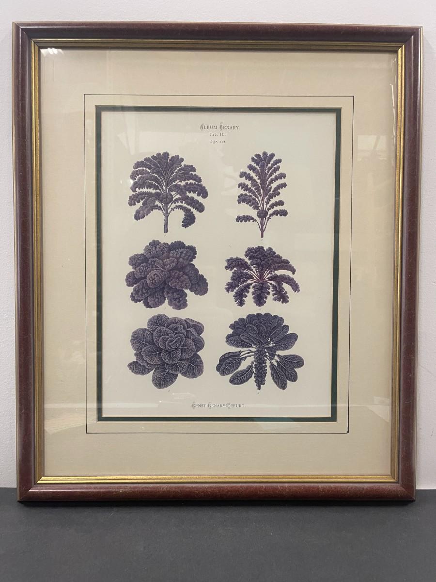 Custom framed botanical print by Ernst Benary Erfurt. Framed: 20" x 23 1/4"; Matte size 11" x 15"