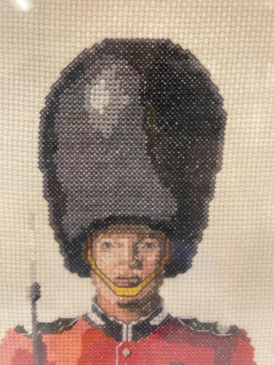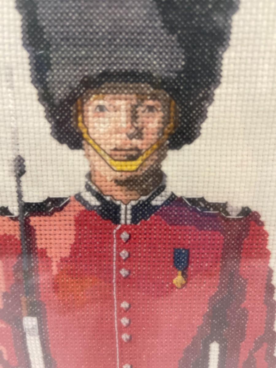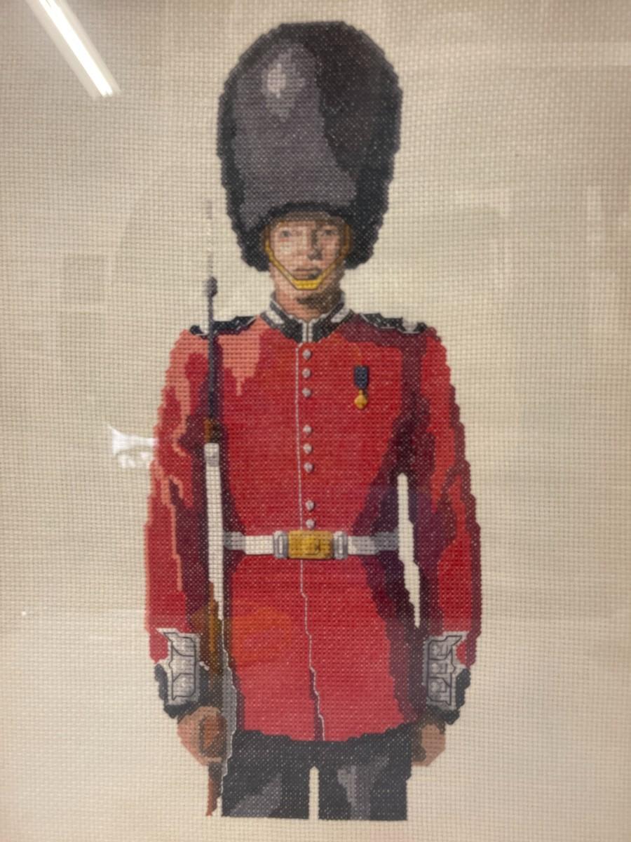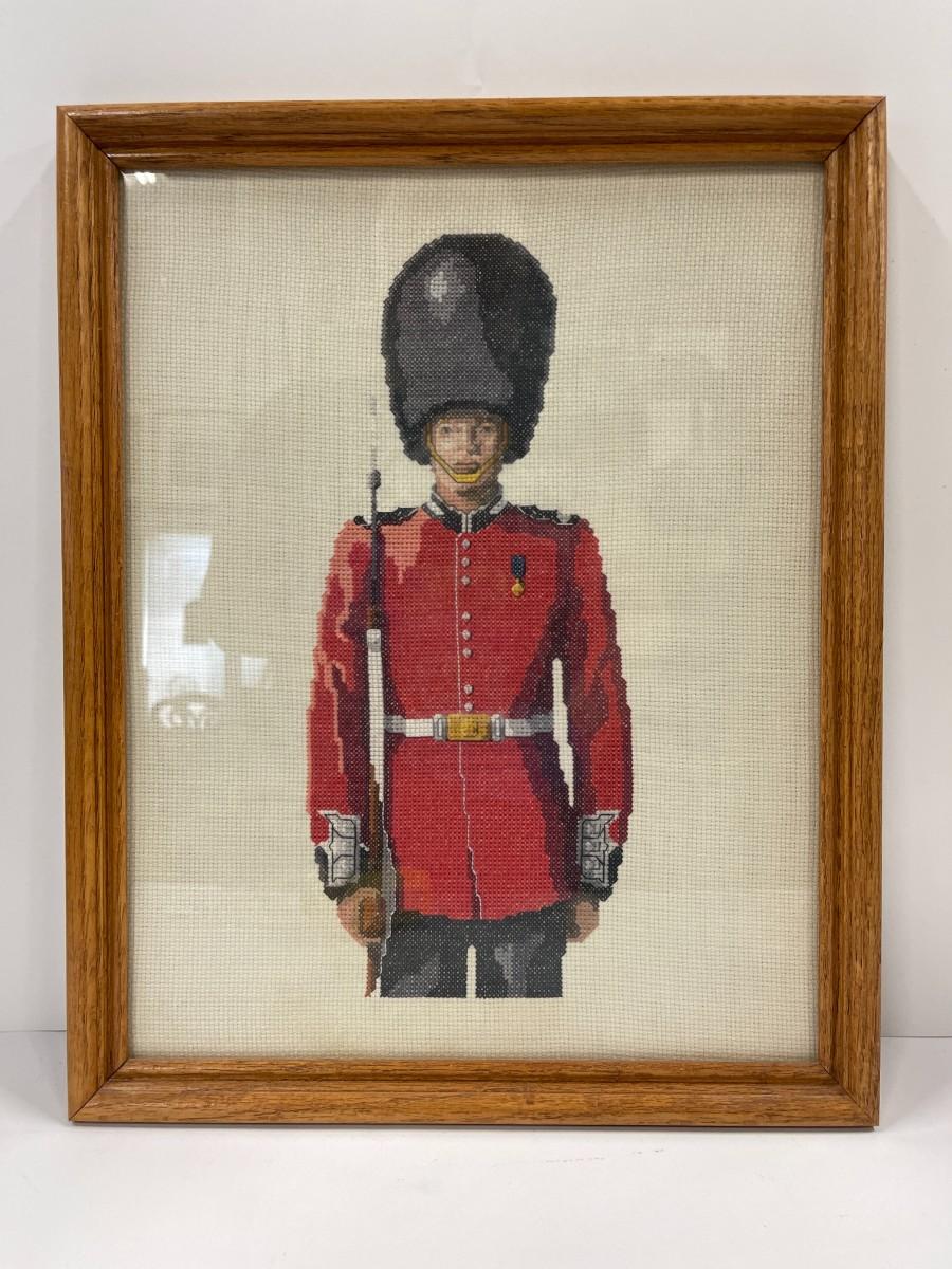 Custom Framed Cross Stitch, British Beefeater. 12" x 15 1/4". # 1314