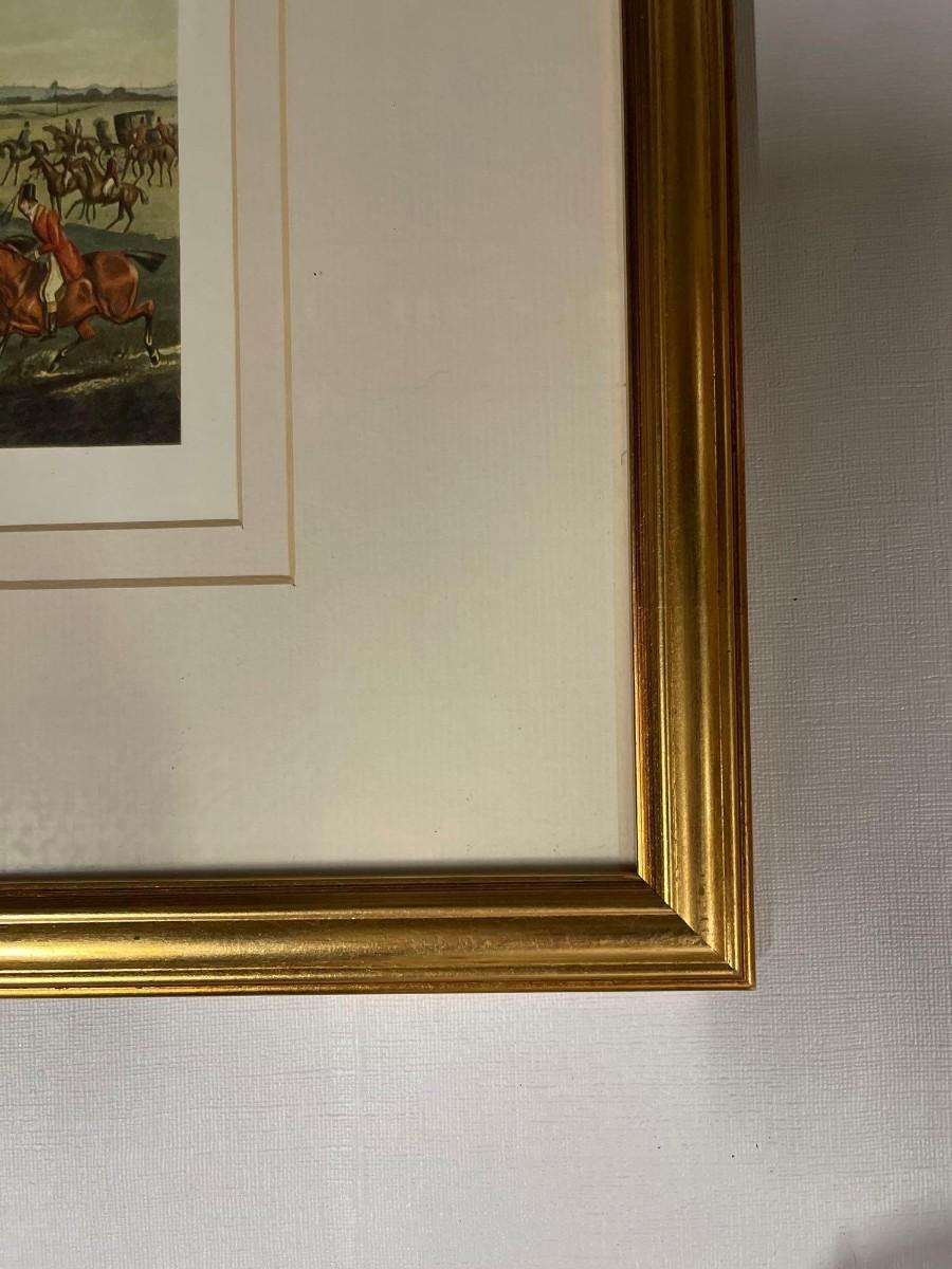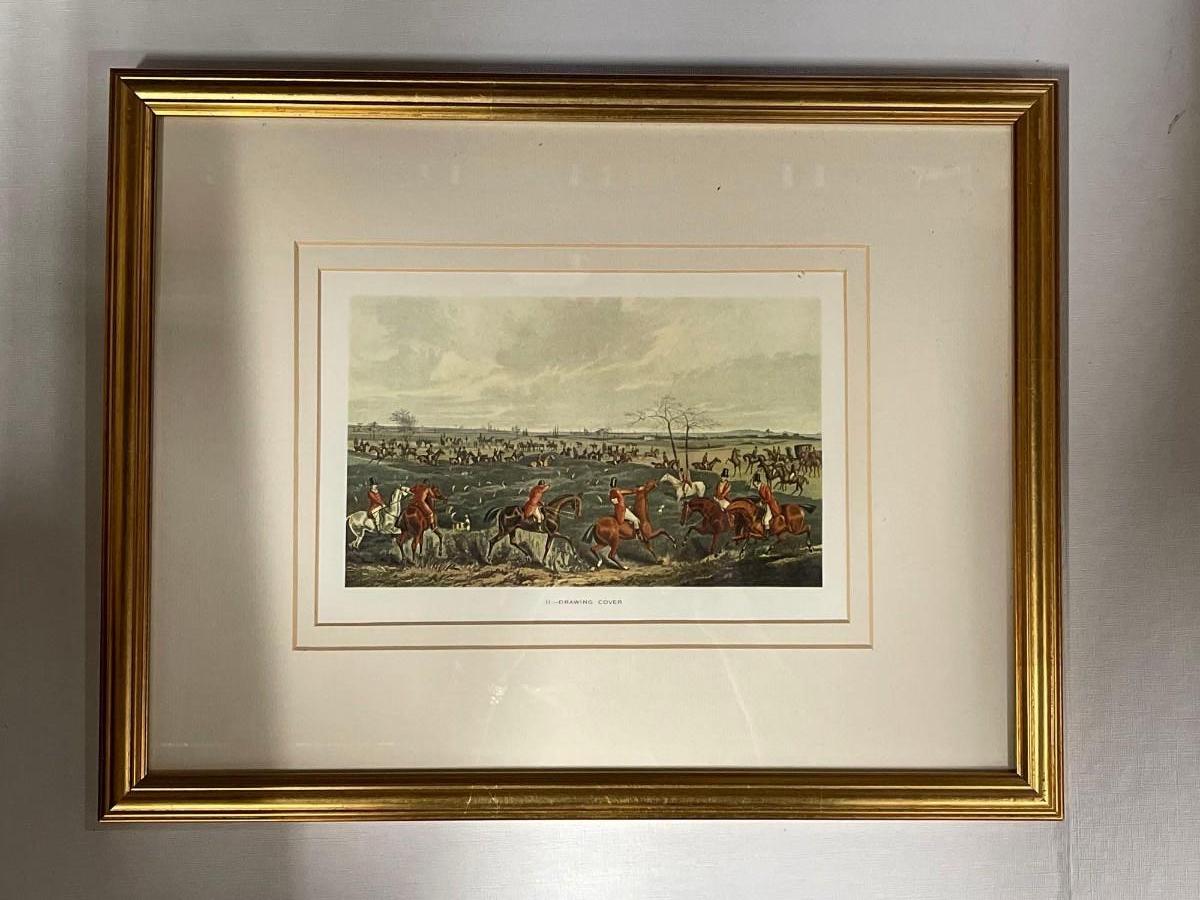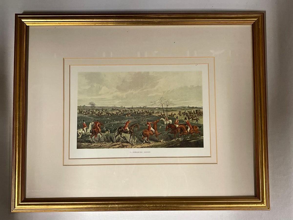 <p>Custom Framed Hunt Scene Print “Drawing Cover”. Excellent condition. Interior image size approx 5 x 8. Framed size 17” x 13 1/4”. </p>