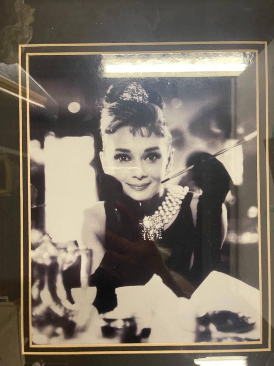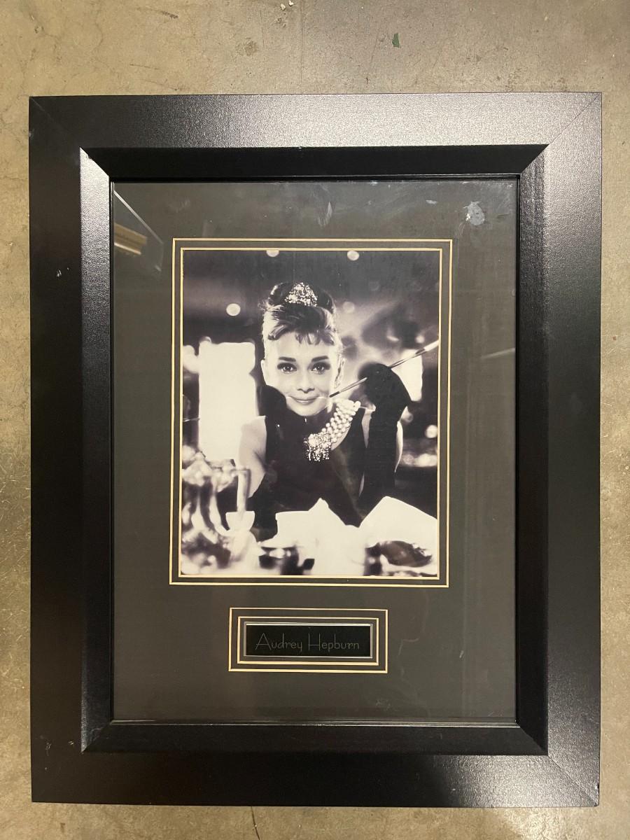 Custom framed photo of Audrey Hepburn from Breakfast at Tiffany's. 16" x 20". Excellent condition.