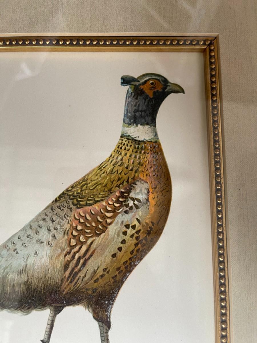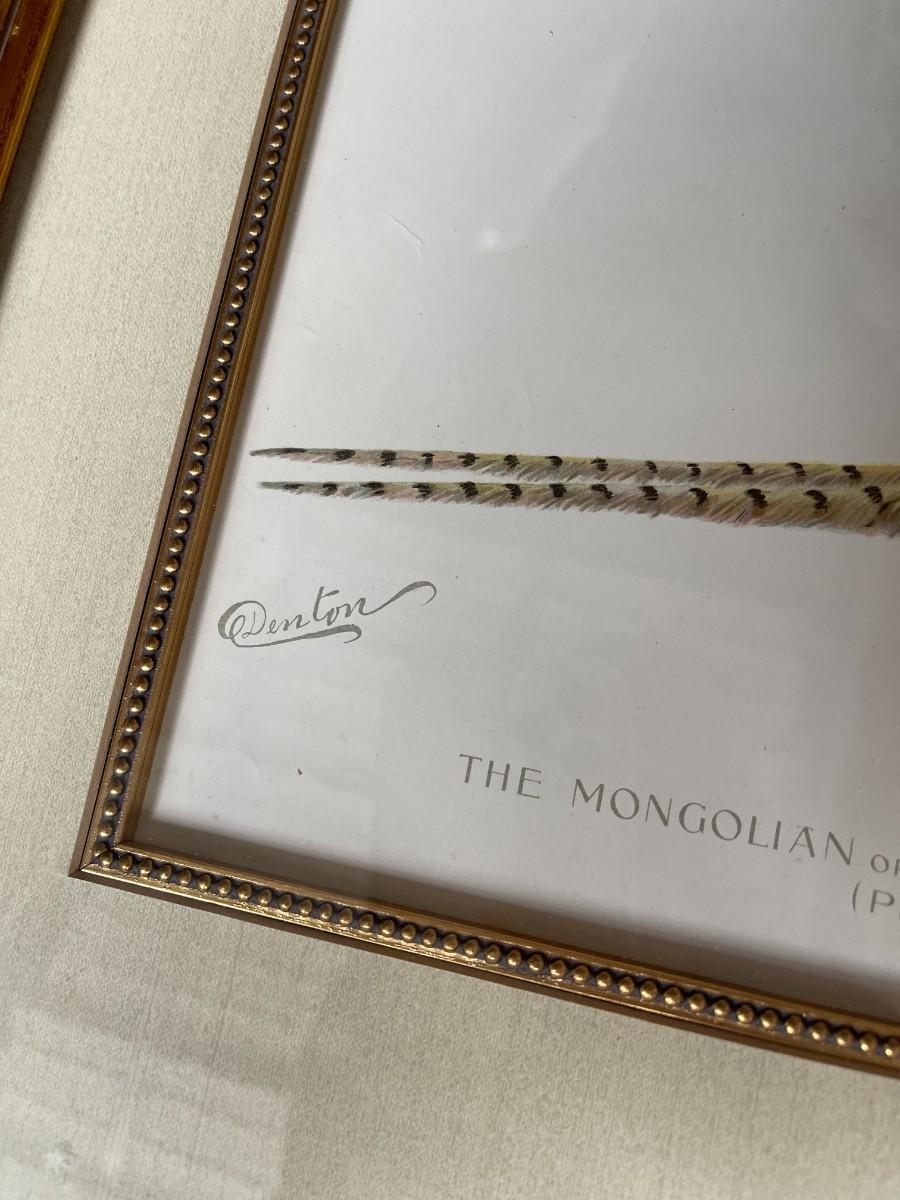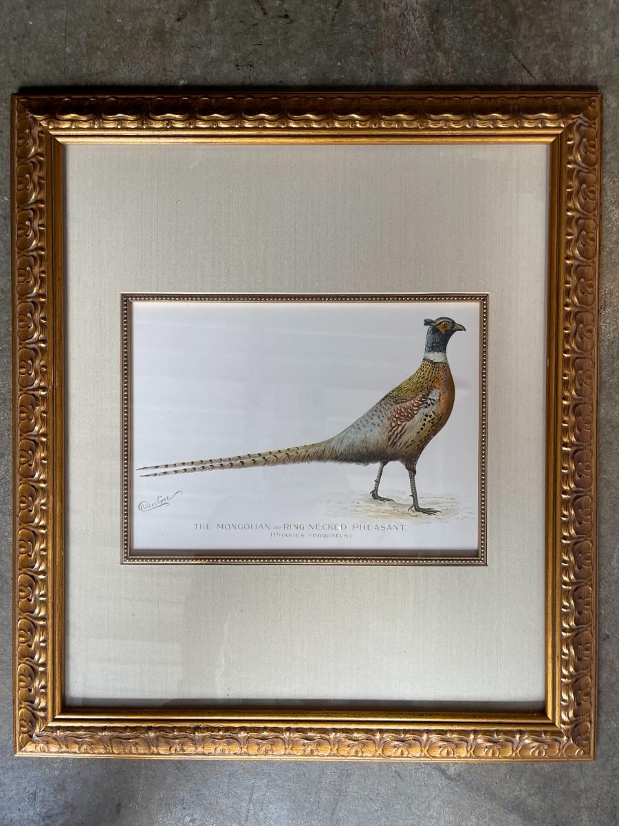 Sherman Denton. Custom framed print, "The Mongolian or Ring-Necked Pheasant From Fish and Game of the State of New York. Excellent condition. 21" x 18 3/4". # 1472