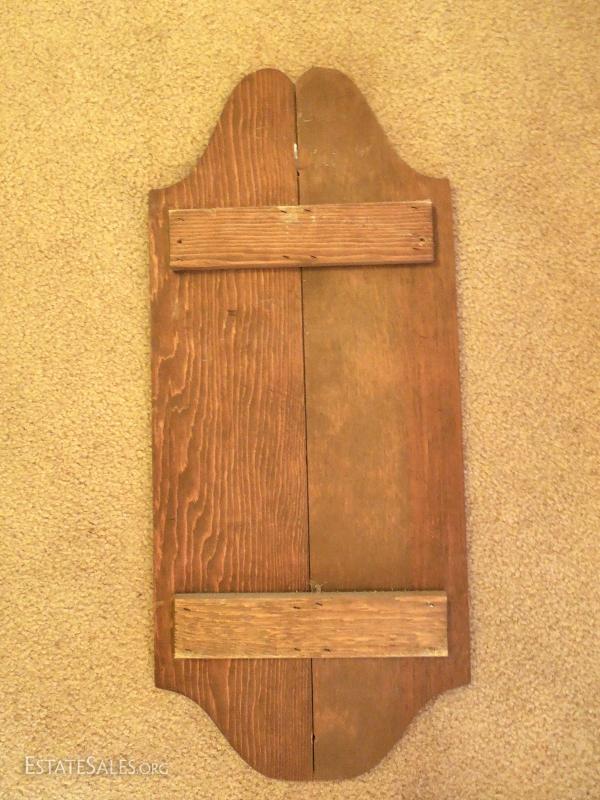 The sign is laminate on wood. Prominent color is yellow, Offset by red and blue outer wood frame. Sign is easily removable.