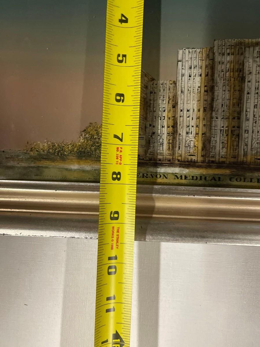 <p>Custom Framed Reverse Painted Picture of Jefferson Medical College </p>