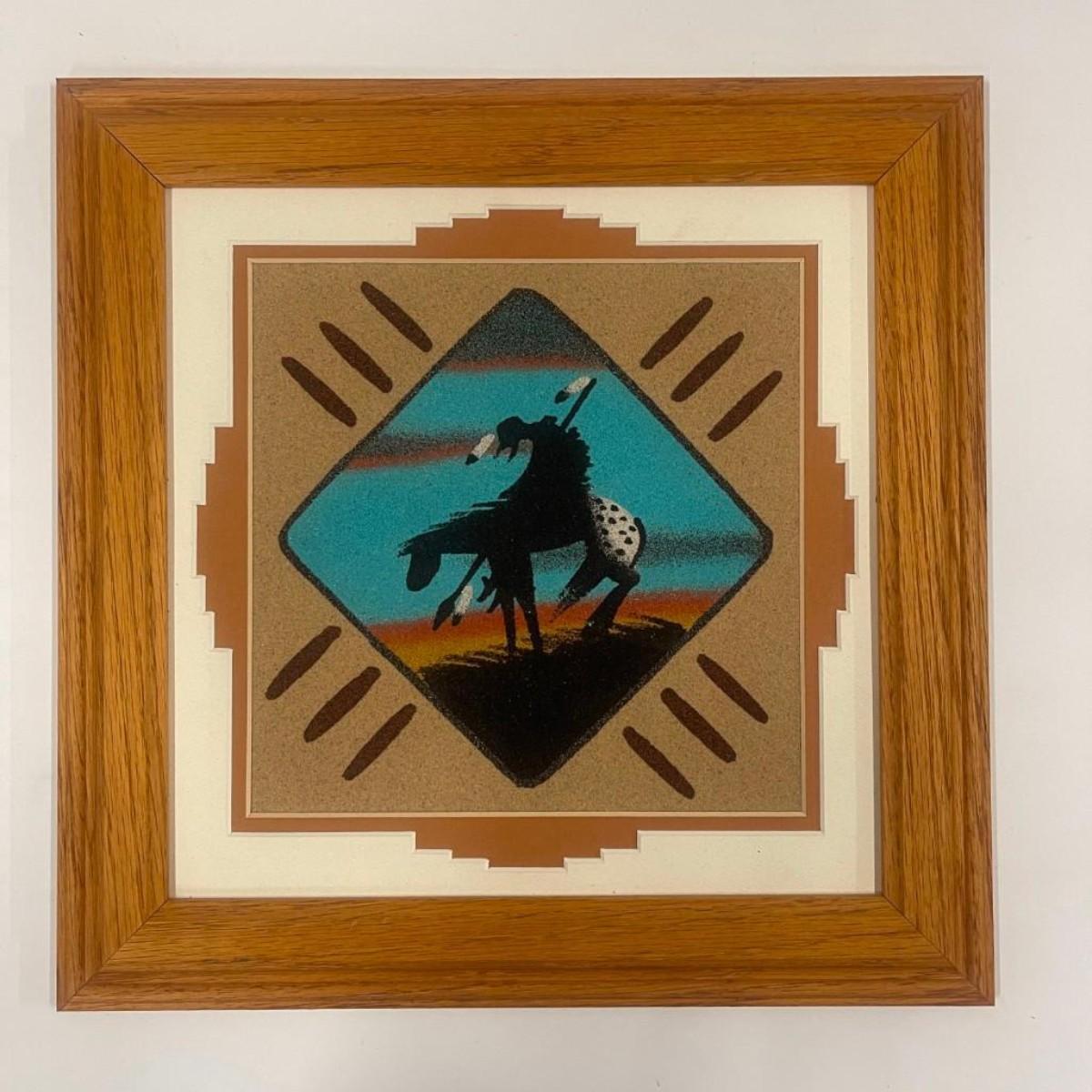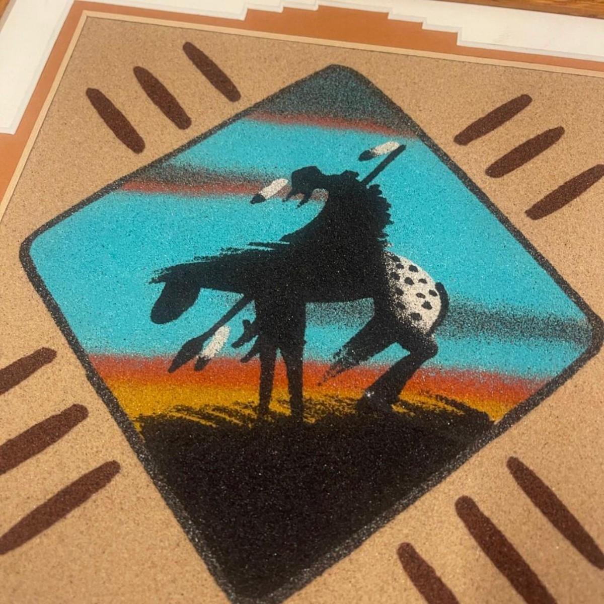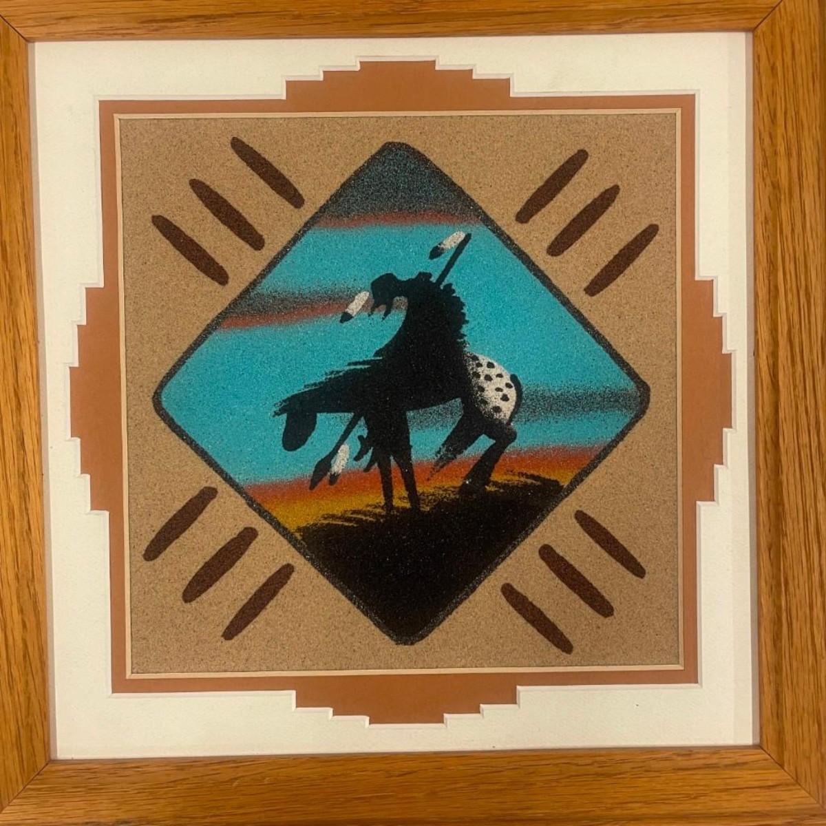 Custom Framed Sand Painting "End of The Trail" by U.T