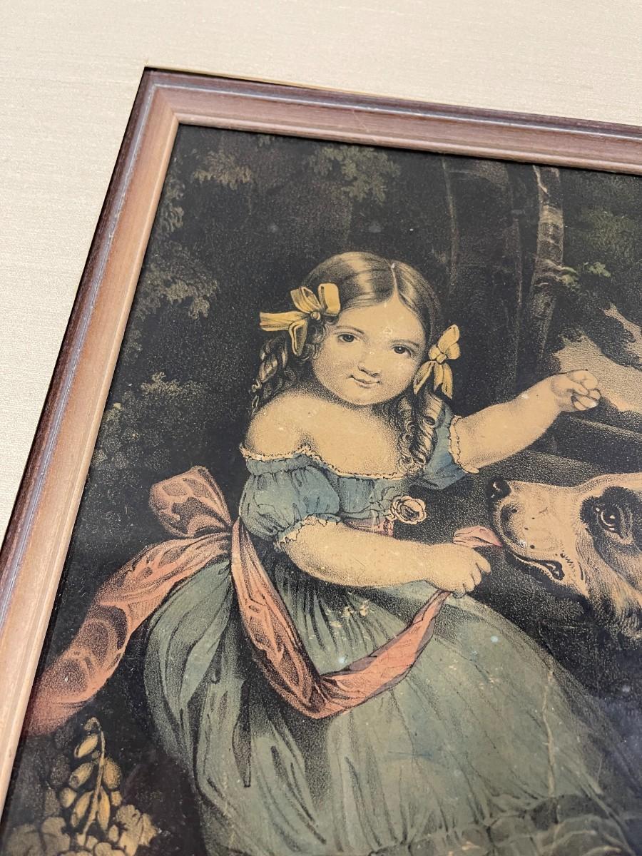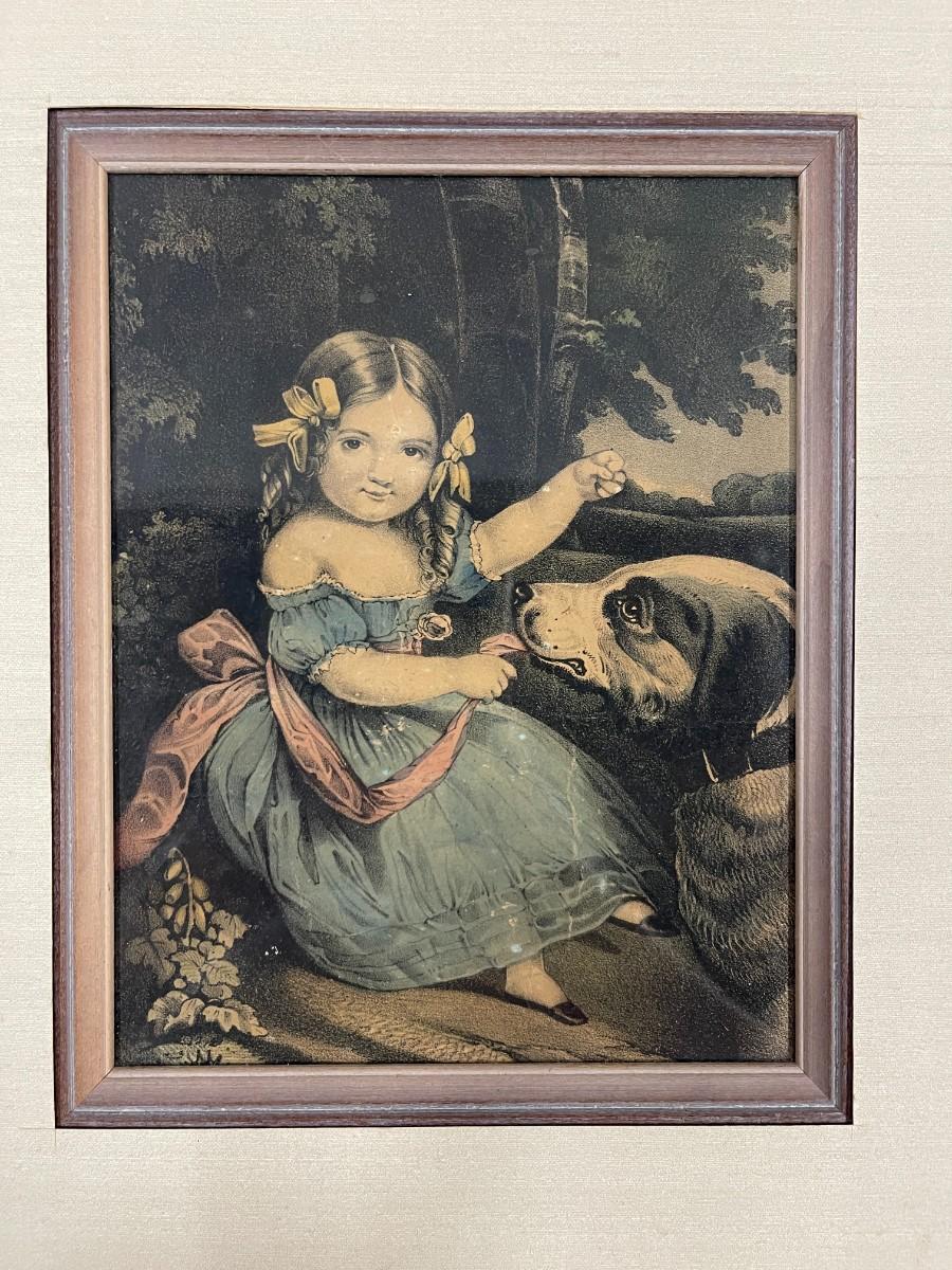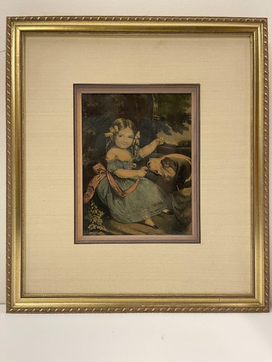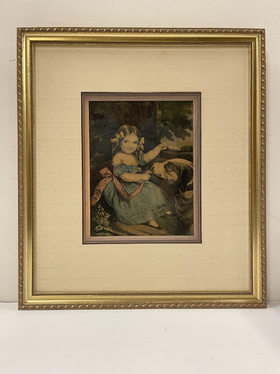 Custom Framed Vintage Print of Girl With Dog