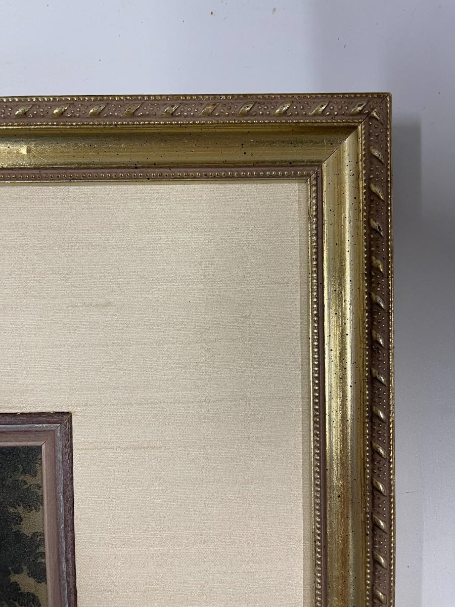 Custom Framed Vintage Print of Girl With Dog. Image: 6 1/2" x 9" and frame: 15 1/2" x 17 1/2"