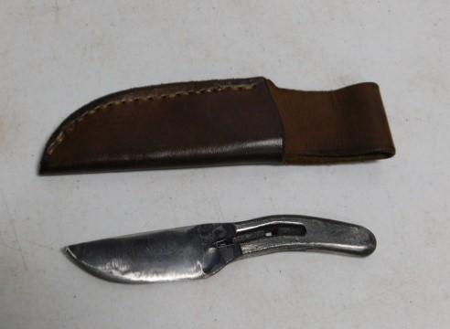 Custom Hand Forged #1 Pony Horseshoe Skinner Knife with Sheath 5.5"