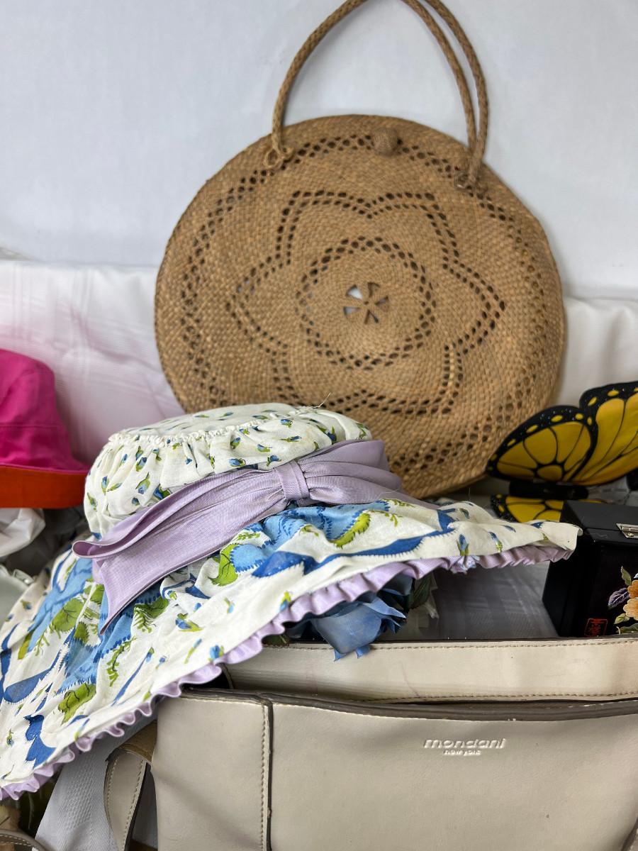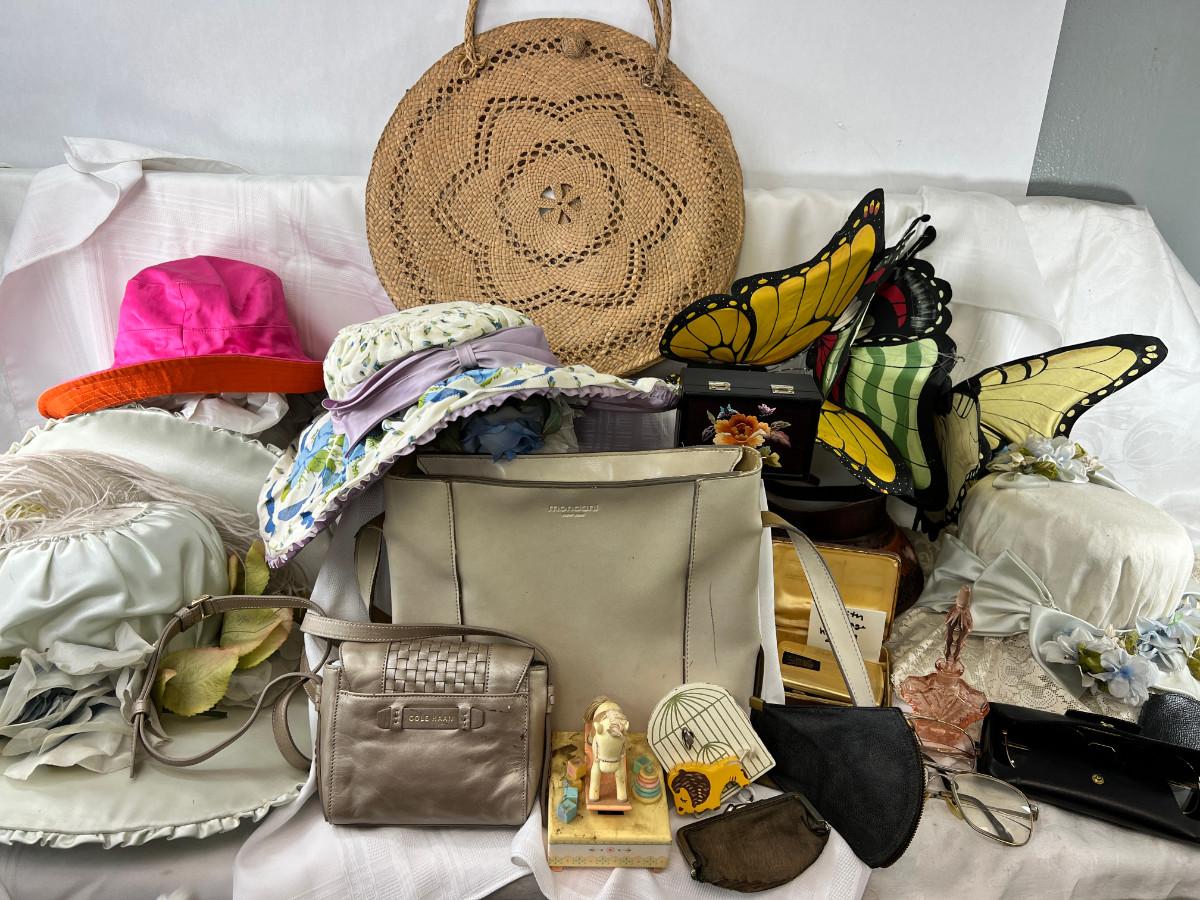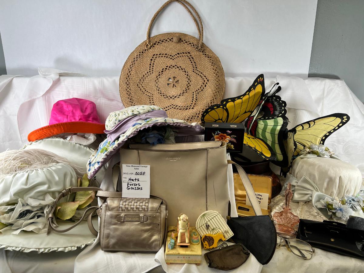 Collectibles, woven round purse, 3 Kentucky Derby hats, hand made designers, small purses