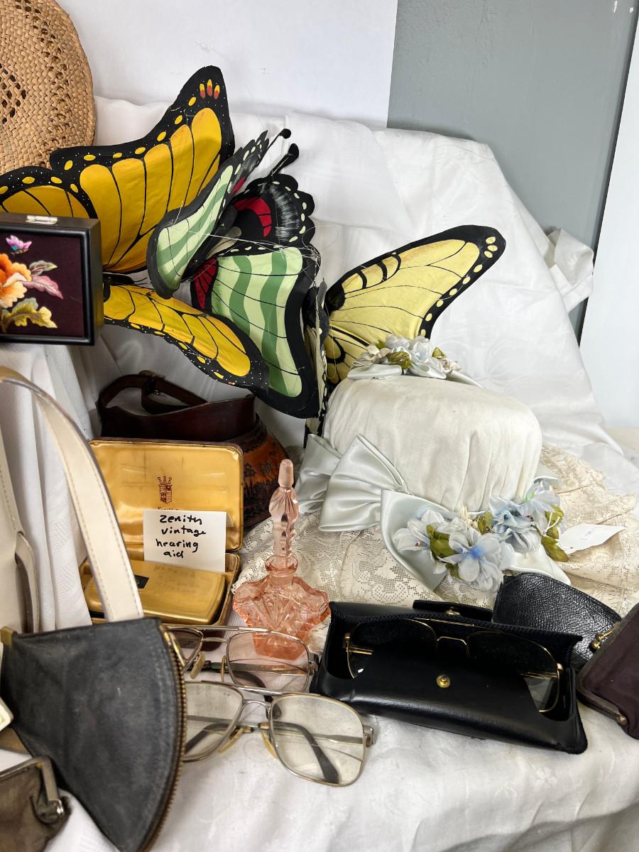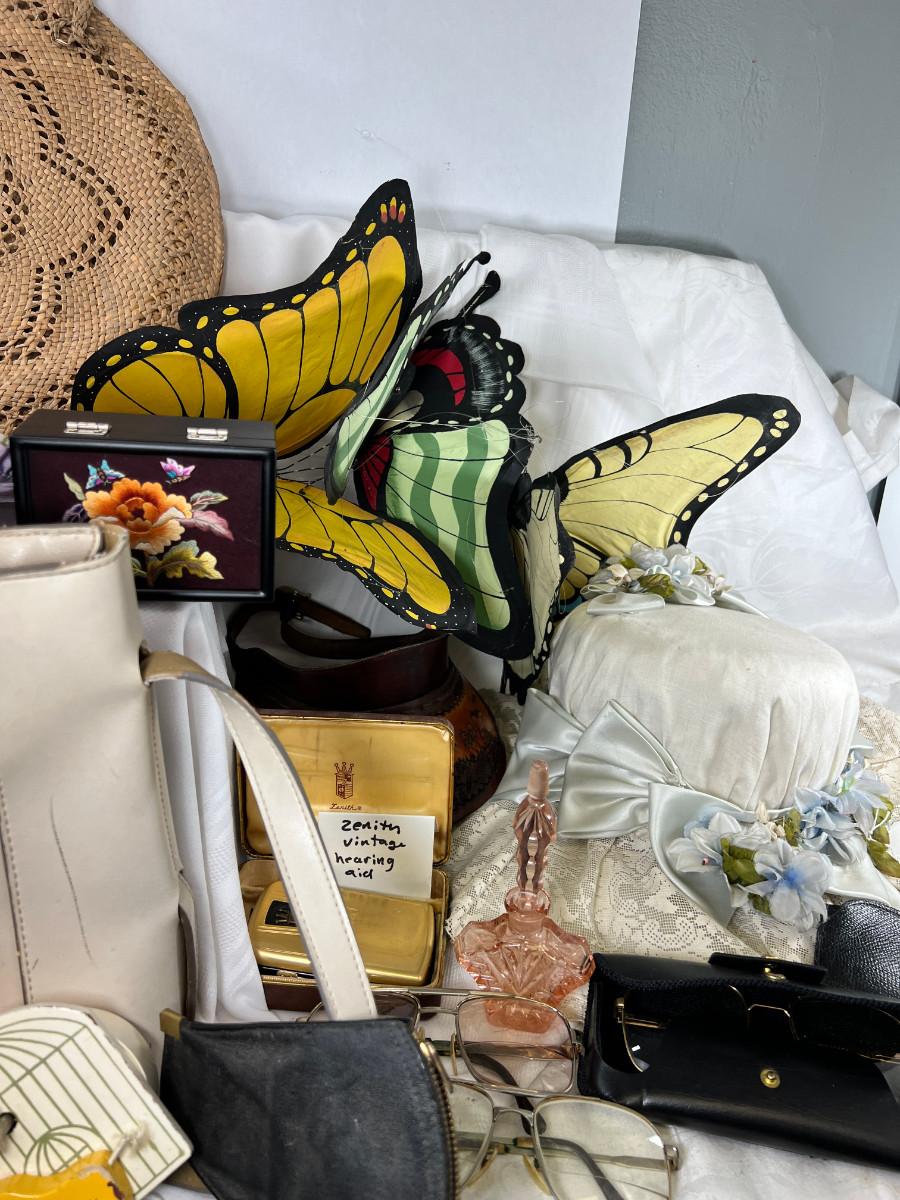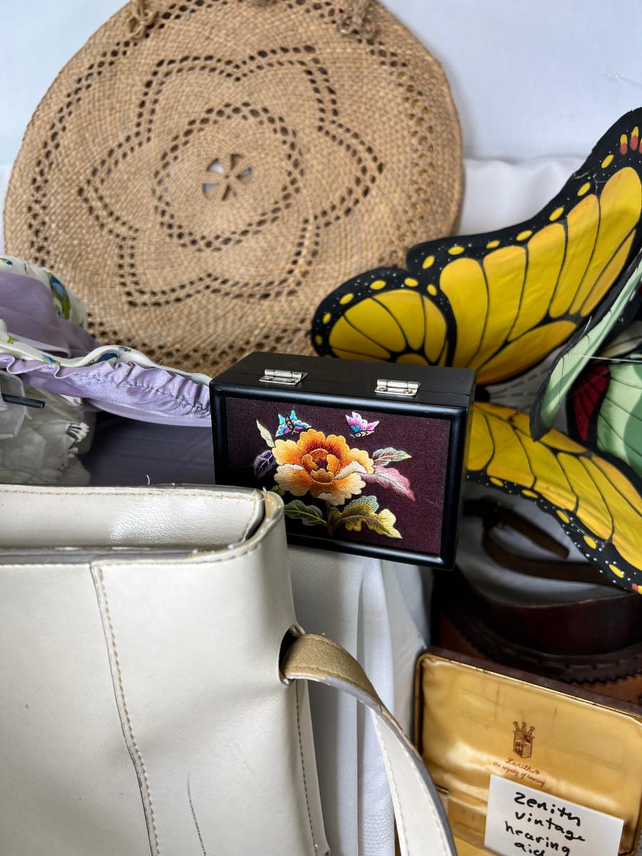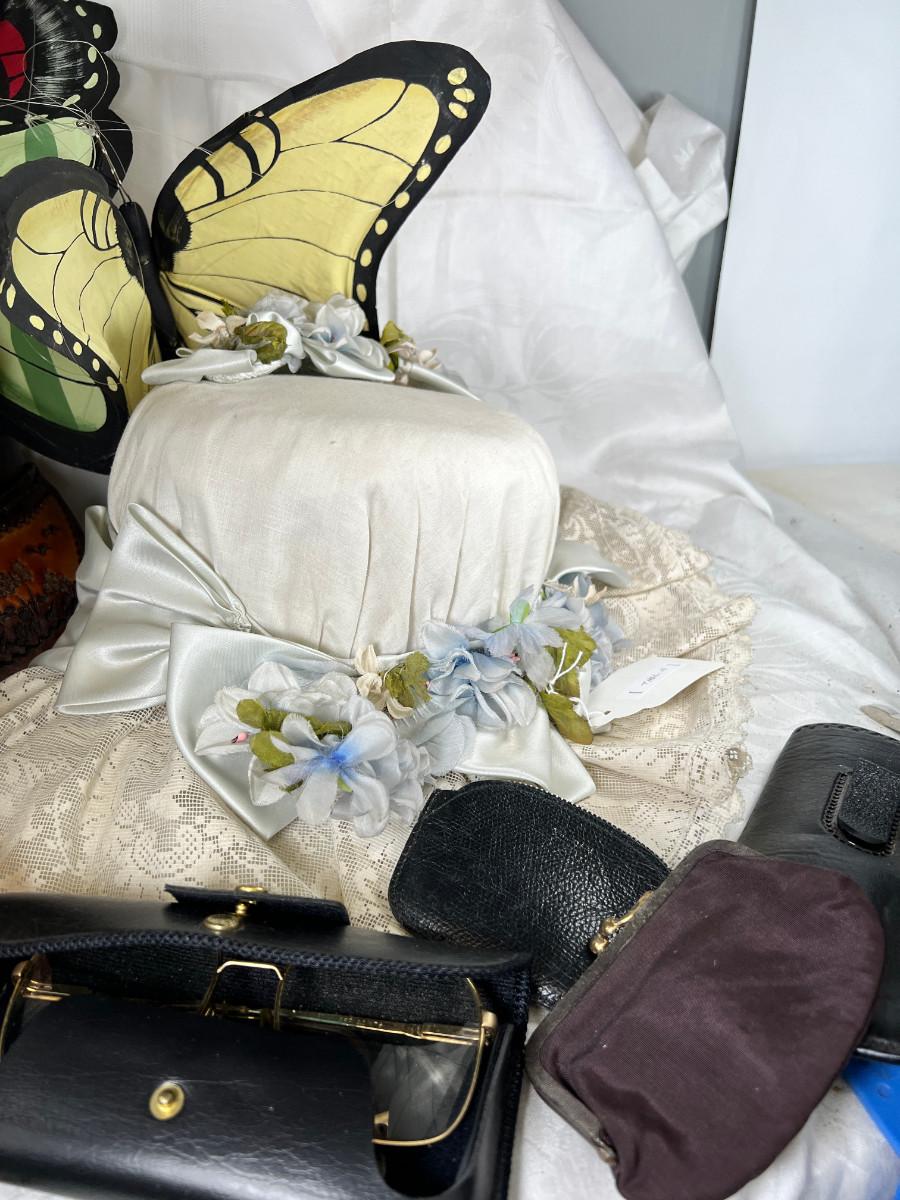 Collectibles, woven round purse, 3 Kentucky Derby hats, hand made designers, small purses