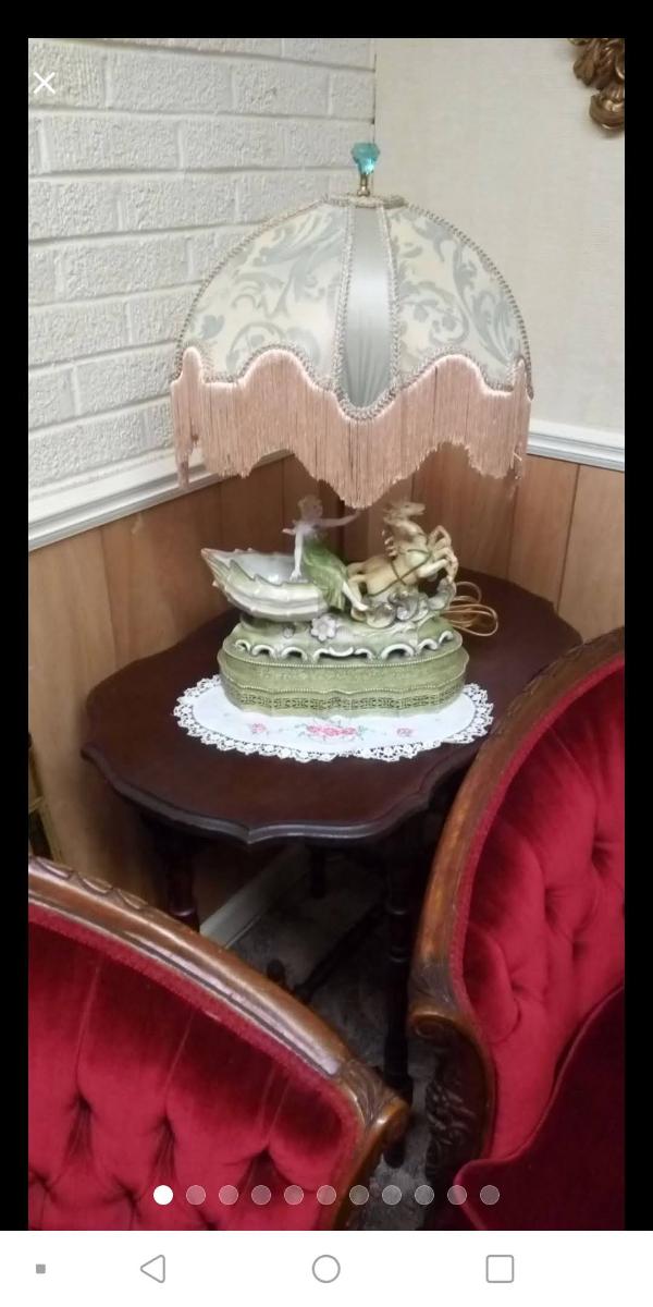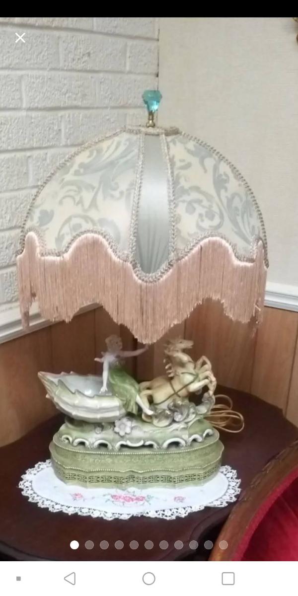 Shade was customed made, hand sewn by an award winning lampshade artist, Suzanne Deaton. Heirloom quality. Beautiful ceramic Victorian lamp. Exquisite. You can find this designers lamps all over the world including the Hewlett Packard World Headquarters in Singapore.