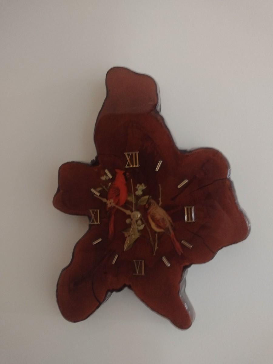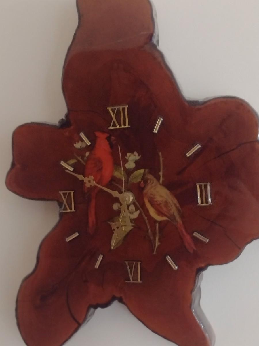 Custom Live Edge Wall Clock with Cardinal Bird Theme Decor