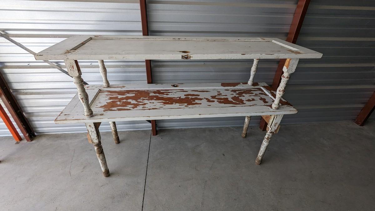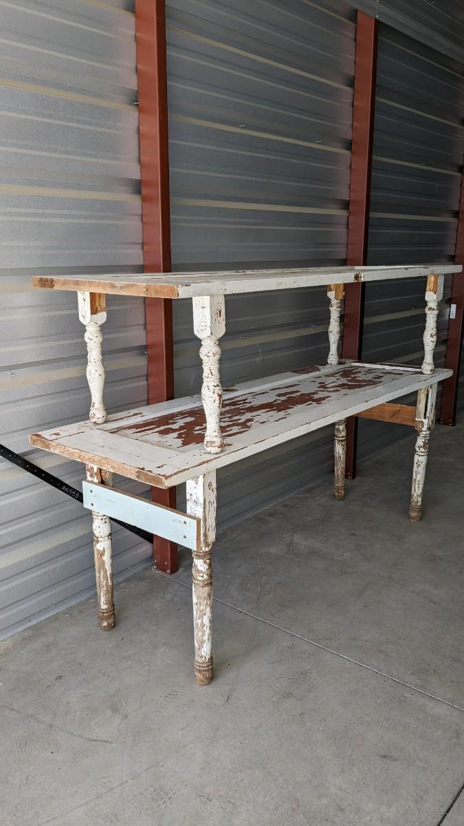 a very neat and unique pair of old doors turned tables. Perfect for stacking as a vendor showpiece, or separate them and use one as a sofa table and the other for a coffee table! These babes have the perfect amount of chippy goodness to make them perfect for your farmhouse or industrial decor! 78"x24"x30" and 75 3/8"x24x19.5". No shipping. 2616
