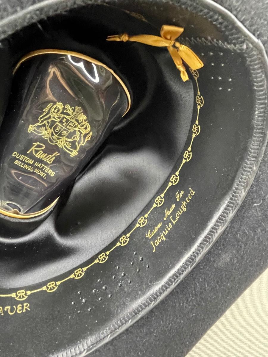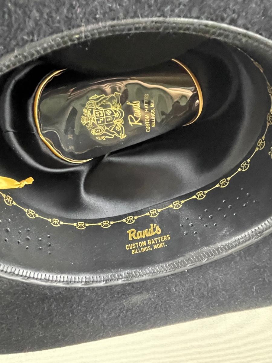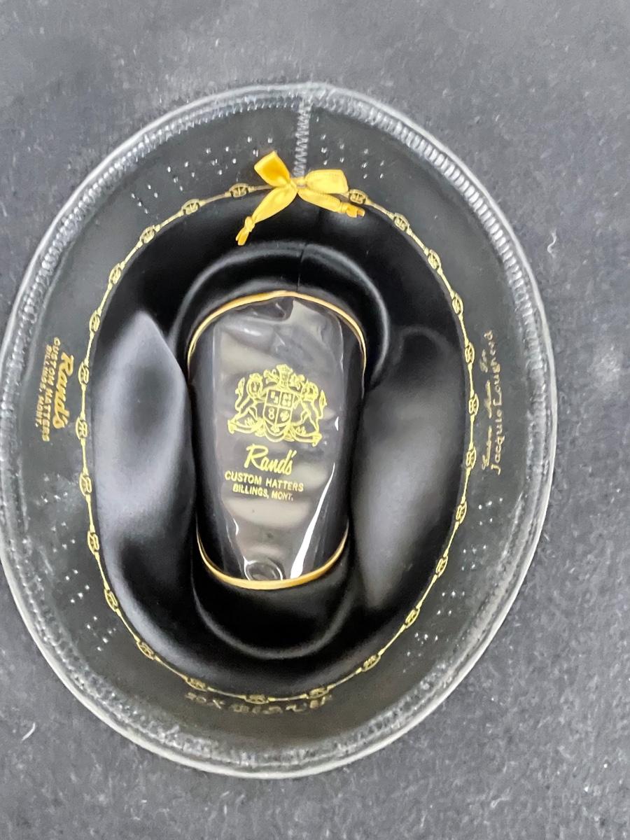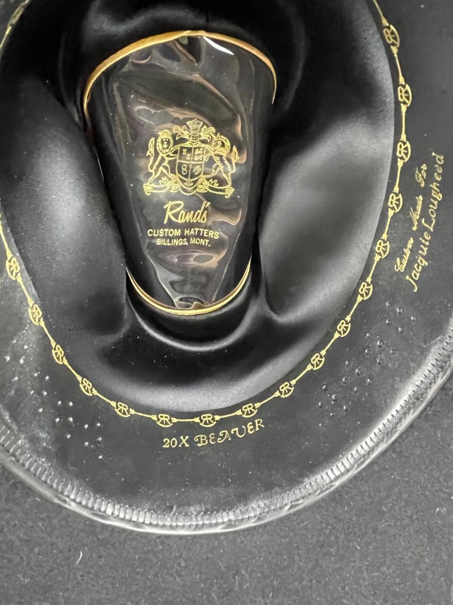 20X Beaver with a 4 inch brim from Rand’s Custom Hatters in Billings MT. With black embossed leather band. Ladies size small 21” circumference. Approximate size 55 or 6 7/8.