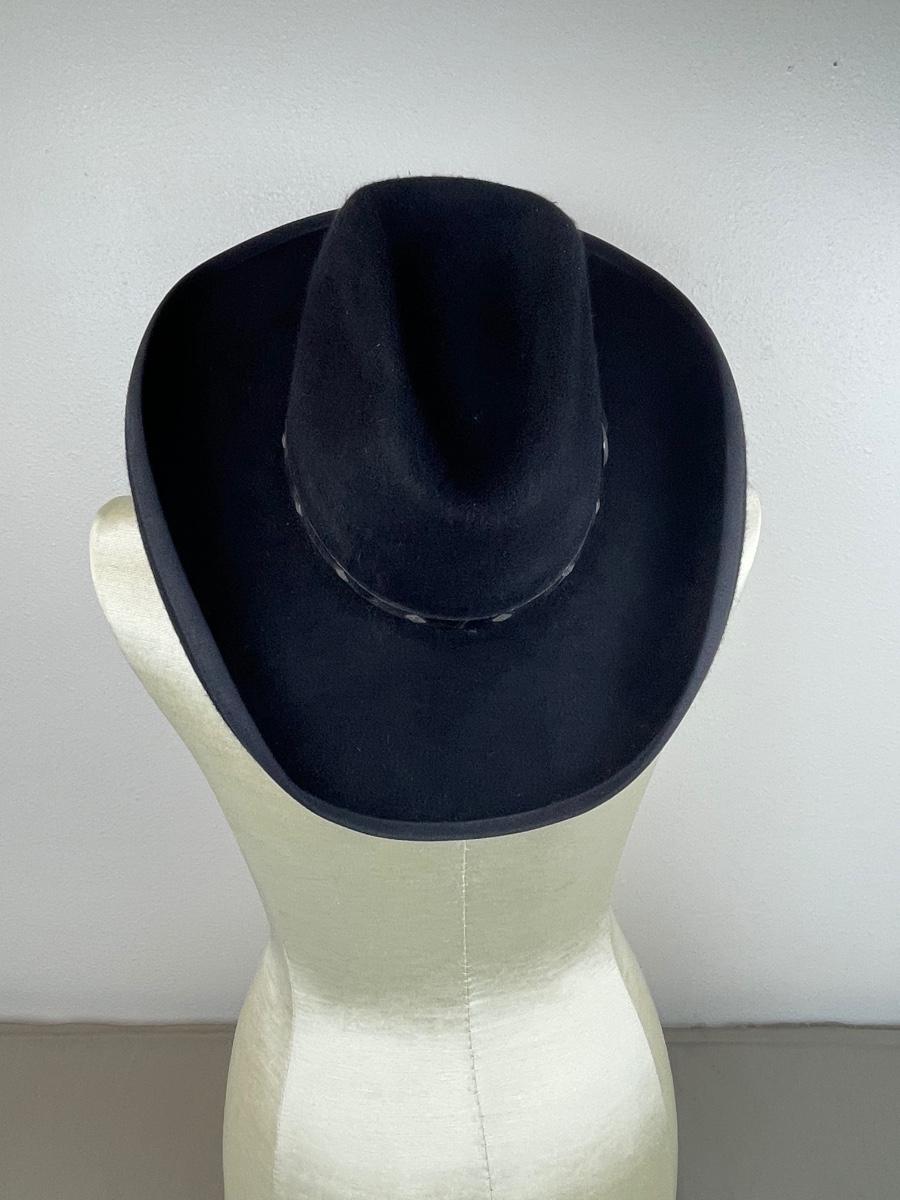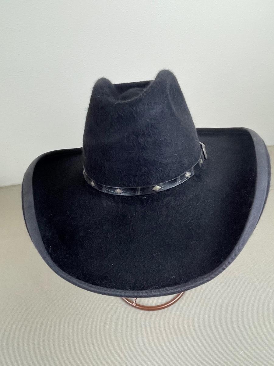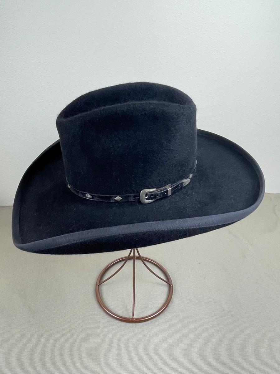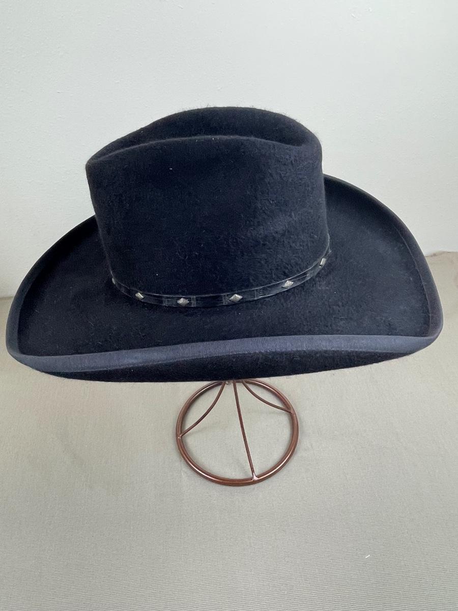 20X Beaver with a 4 inch brim from Rand’s Custom Hatters in Billings MT. With black embossed leather band. Ladies size small 21” circumference. Approximate size 55 or 6 7/8.