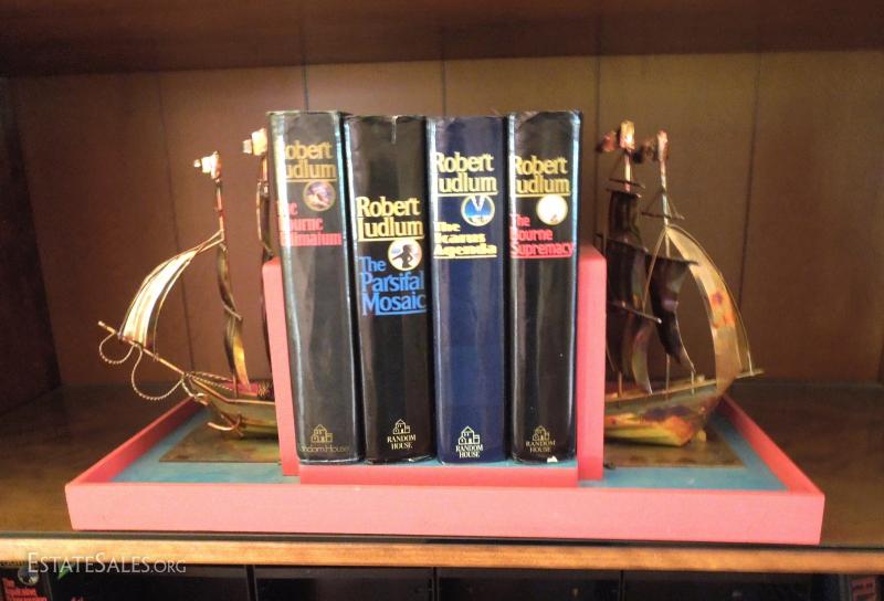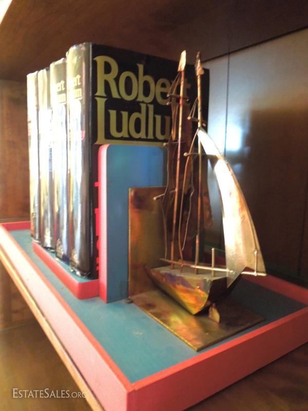 Custom Made Copper Ship Bookend Shelf and 4 Ludlum Novels